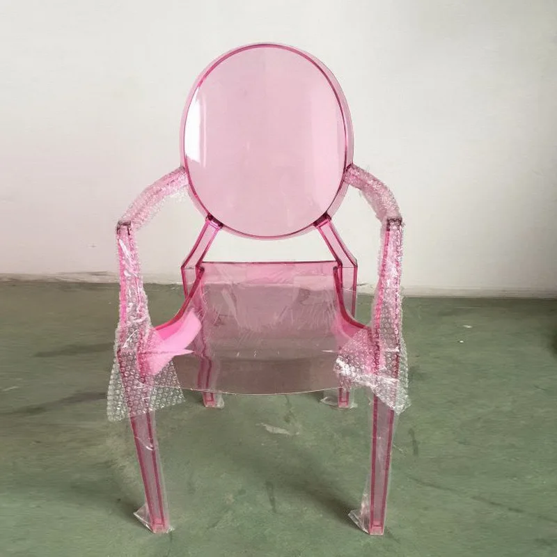 A wholesale acrylic transparent ghost chair with arms is available for wedding event furniture for adults. This chair is sleek and modern, with a transparent design that gives the illusion of floating. It is perfect for adding a touch of elegance to any event, while also being durable and practical for guests to use. The chair’s arms provide added comfort and support. It is ideal for rental companies or event planners looking to provide high-quality seating for weddings and other special occasions.