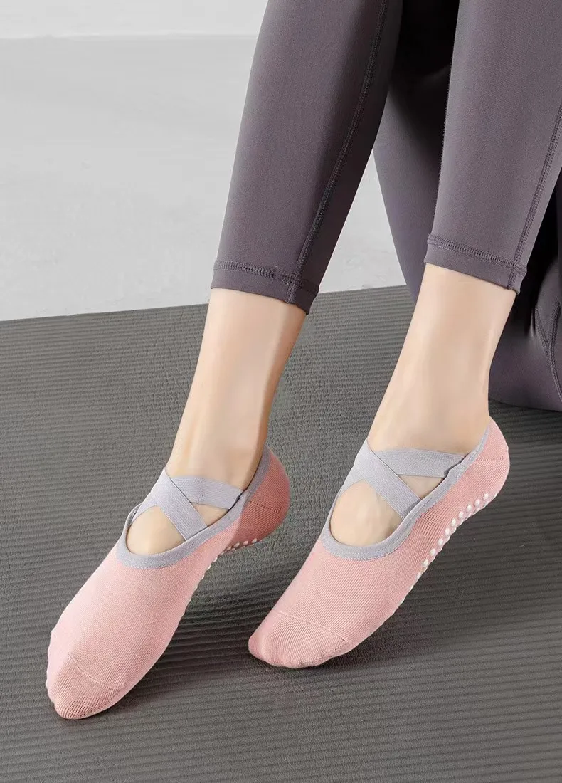 Yogasocken für Damen bestehen aus einer Mischung aus Nylon und reiner Baumwolle, Bietet Komfort und Haltbarkeit während der Yoga-Praxis. Der rutschfeste Bereich und die Bandage sorgen dafür, dass die Socken an Ort und Stelle bleiben und bieten Stabilität bei Yoga-Posen. Diese Socken wurden speziell für Frauen entwickelt, Bietet eine gute Passform und verhindert ein Verrutschen auf glatten Oberflächen. Die in den Socken verwendete Materialkombination macht sie atmungsaktiv und feuchtigkeitstransportierend, Halten Sie die Füße während des Trainings trocken und frisch. Gesamt, Diese Yoga-Socken sind eine tolle Ergänzung für jede Yoga-Routine für Frauen und sorgen für zusätzlichen Komfort und Halt.