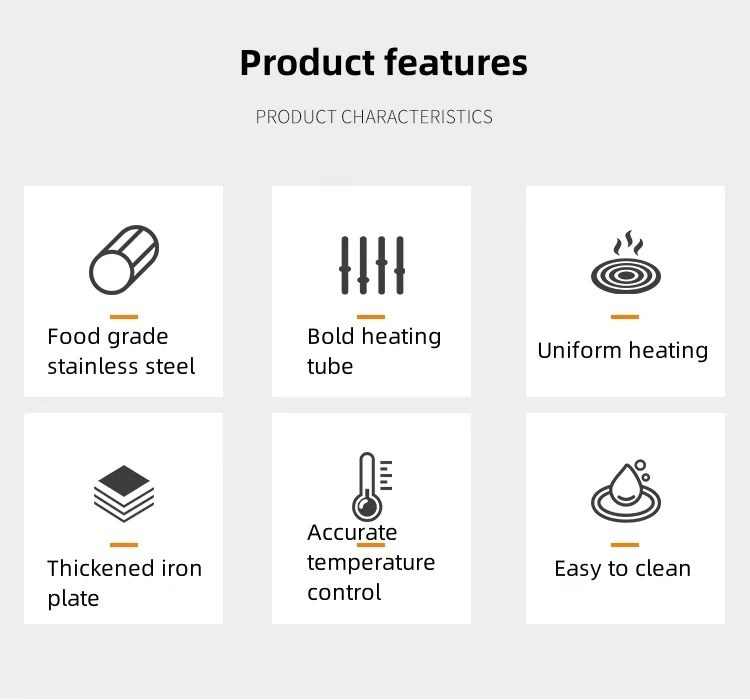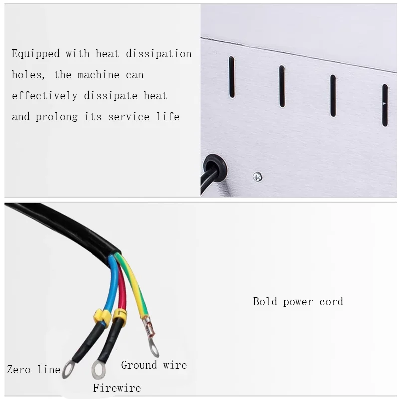 Intimated Design: The oil leakage hole is used to take the waste off, the oil storage box is used to collect the waste oil and food, which is easy to dump, the rubber bottom corner makes the electric grill more stable, the raised oil baffle keeps oil splash, and the heat dissipation hole speeds up the heat dissipation.
