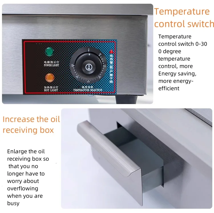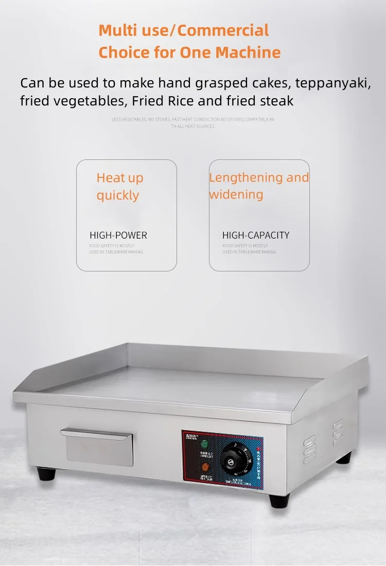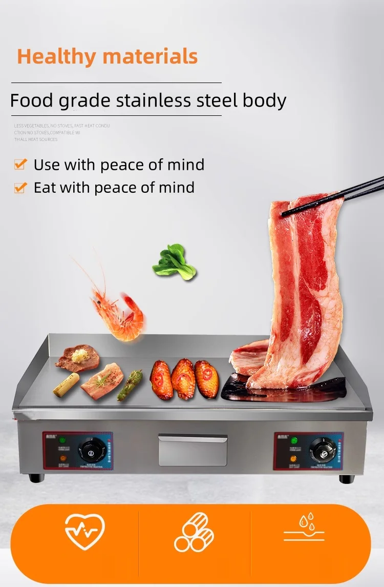 Electric Countertop Griddle with Drawer Stainless Steel Flat Top Grill Barbecue BBQ machine for Outdoor Camping Cooking