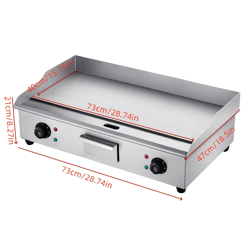 For Various Food: The electric flat top grill can be used in family or commercial places, such as restaurants, tiendas, roadside stalls, and snack bars; It is very suitable for processing pancakes, crispy bacon, roast cheese, rich breakfast, fried dishes, tortillas, pizza, bife, and hamburgers.
