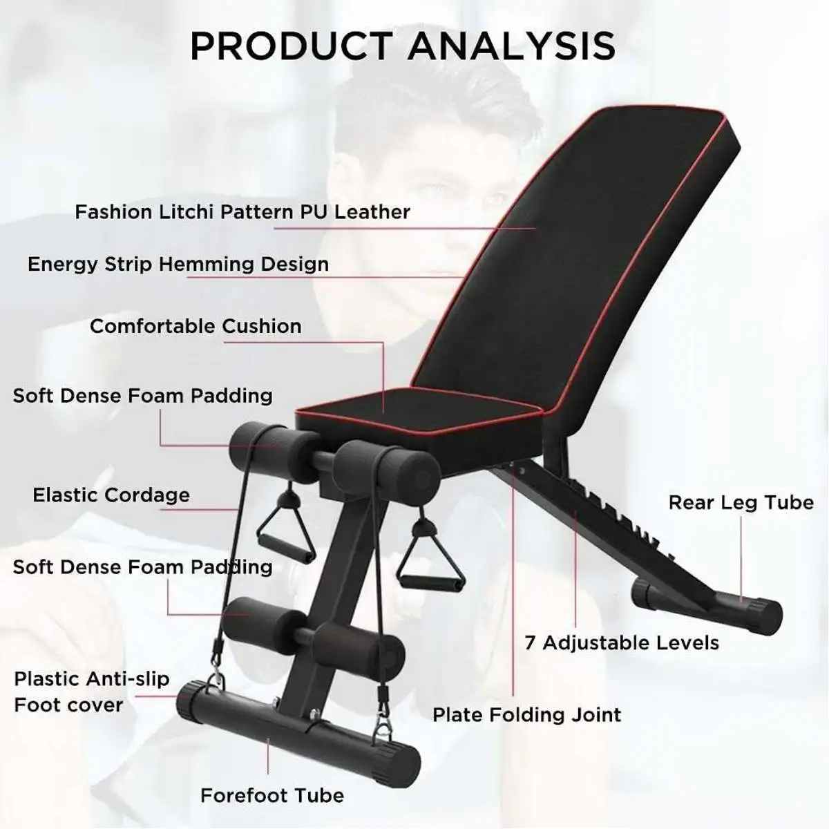 Banco de peso plegable Presiona pesada Entrenamiento de ejercicios Fitness Ejercicio Gimnasio &Rechazar