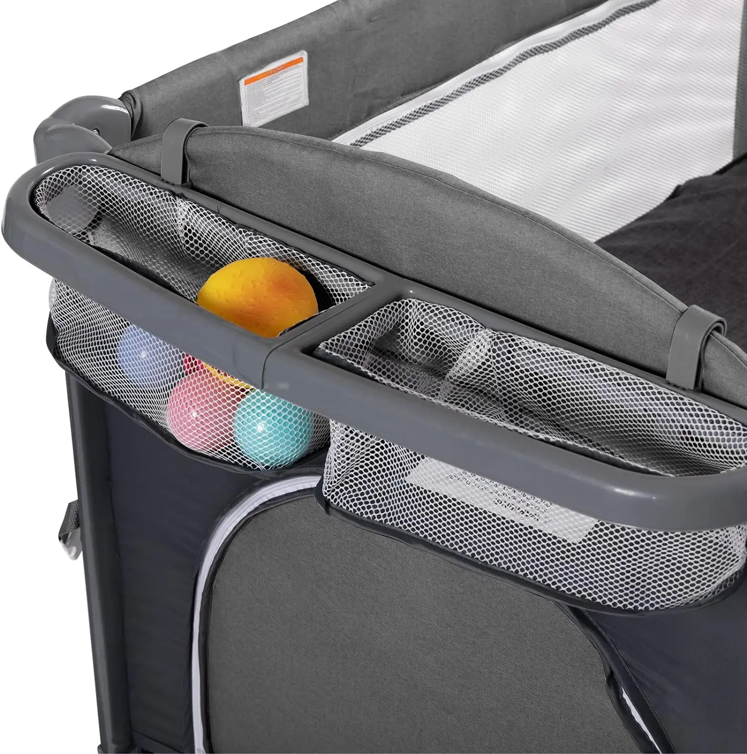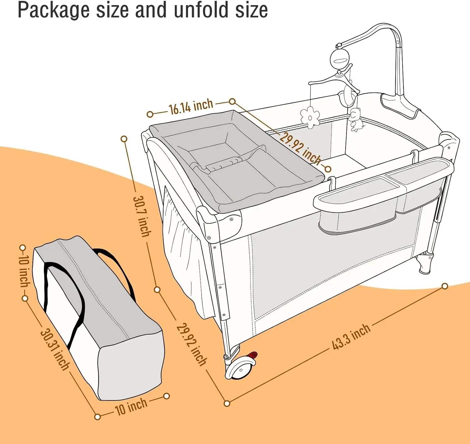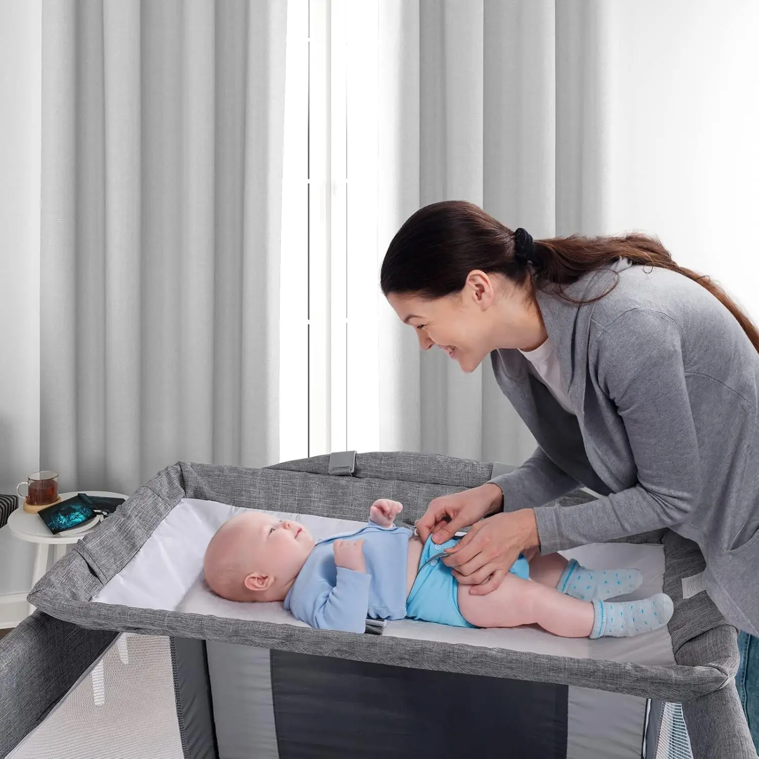 5 en 1 Cuna de bebé,Caña de bebé, Cunas de noche, Pack and Play with Bassinet and Changing Table, Portable Travel Baby Playpen with Bassinet Toys & Music Box,Mattress for Girl Boy Infant Newborn (Gris)