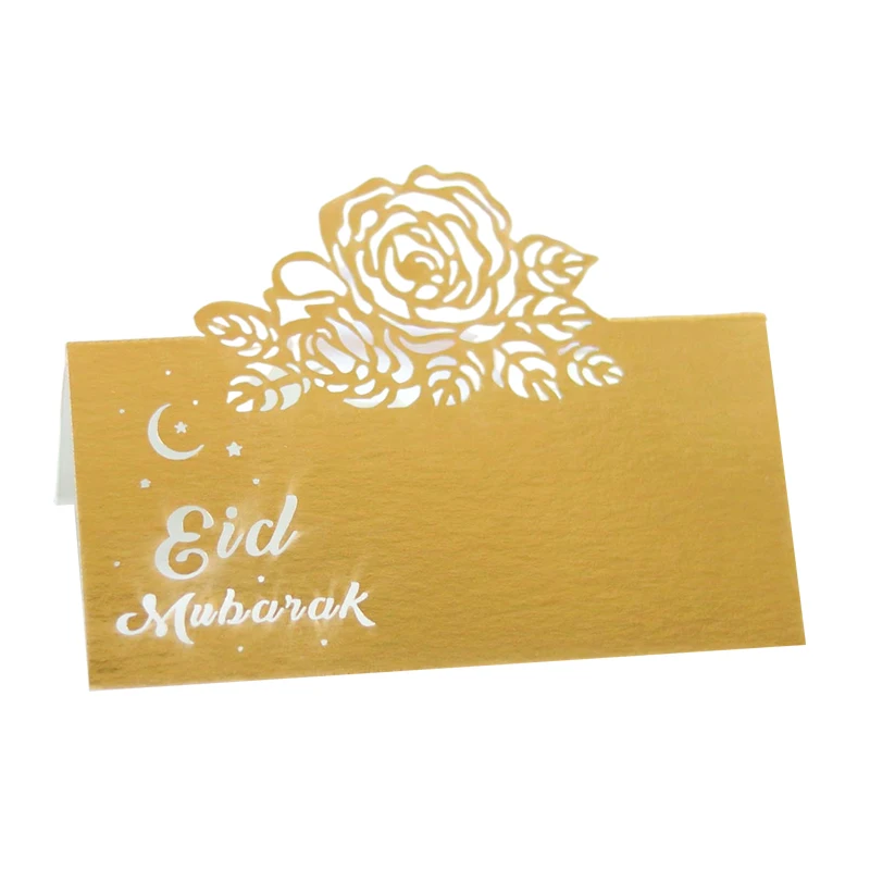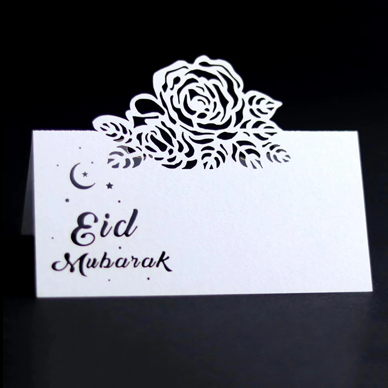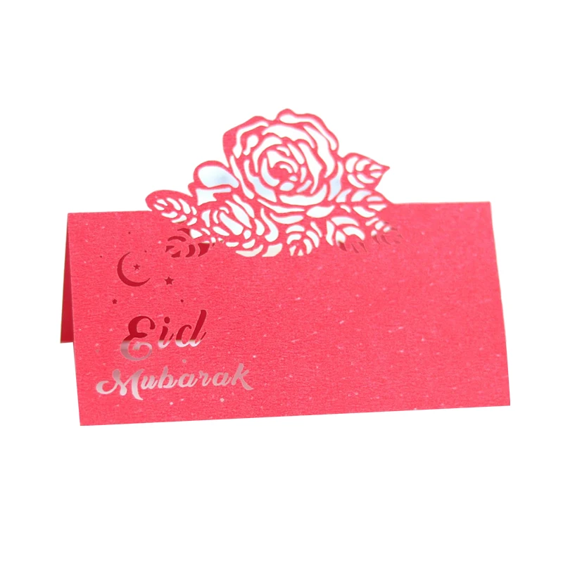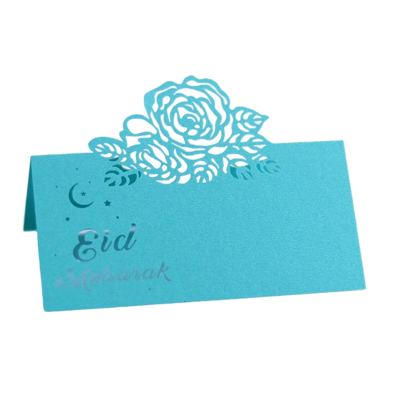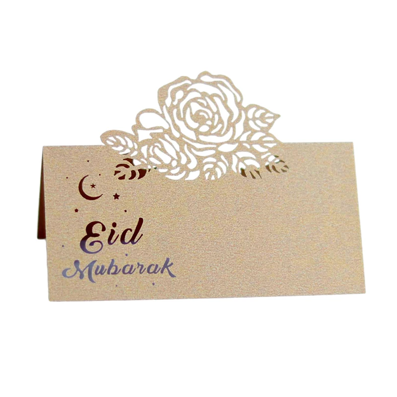 50/100Uds Eid Mubarak Rose Flowe mesa nombre lugar tarjetas musulmán encaje nombre mensaje configuración tarjeta boda cumpleaños fiesta Favor Decoración