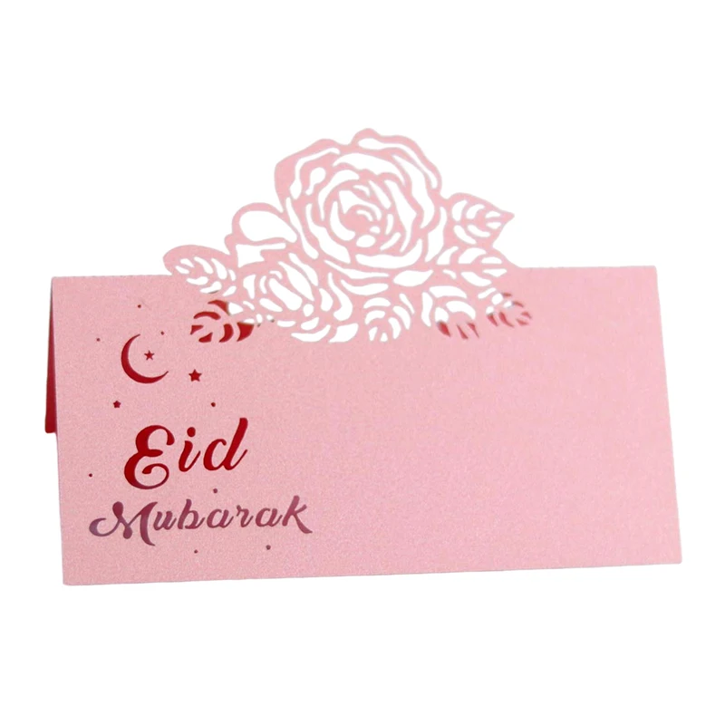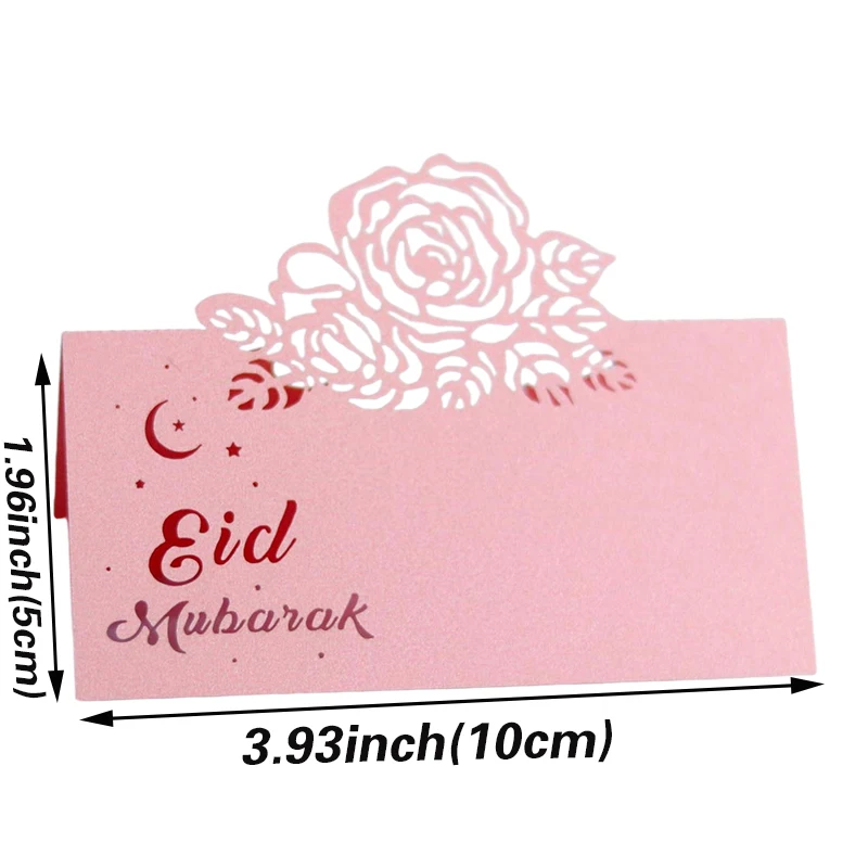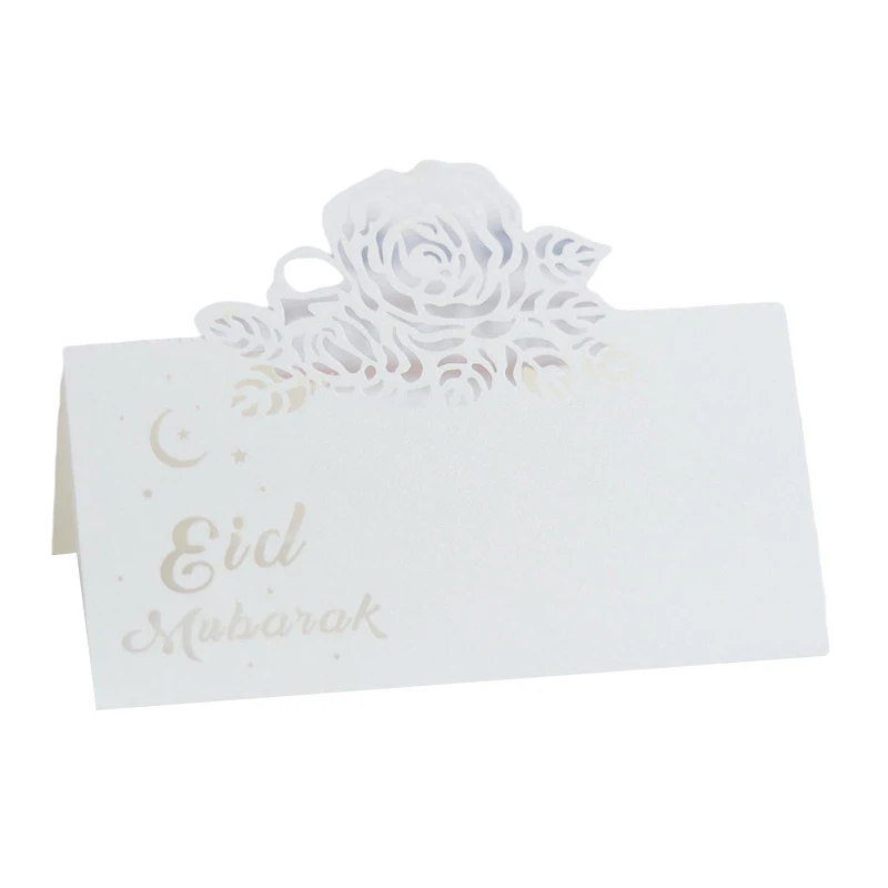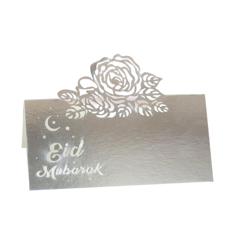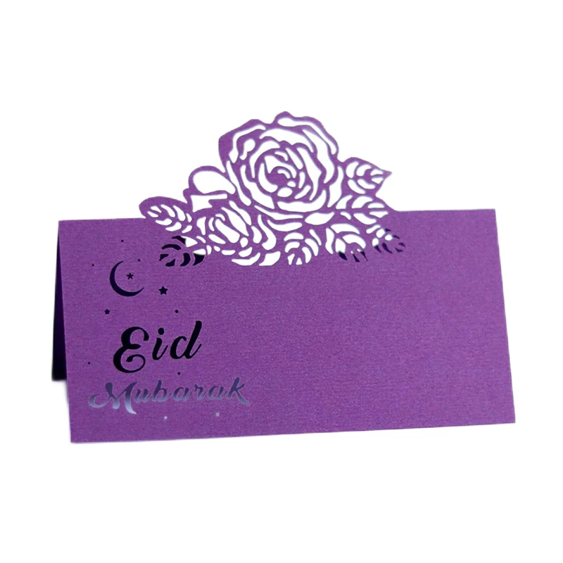 50/100Uds Eid Mubarak Rose Flowe mesa nombre lugar tarjetas musulmán encaje nombre mensaje configuración tarjeta boda cumpleaños fiesta Favor Decoración