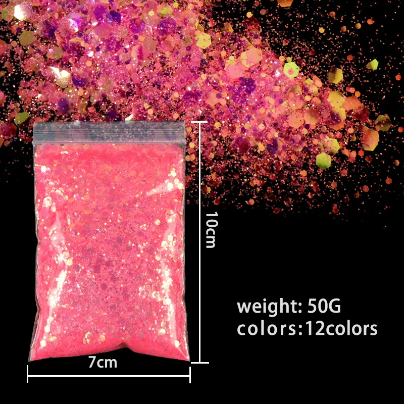 50G Aurora Color mezclado forma hexagonal brillo grueso lentejuelas resina epoxi molde de silicona relleno para Gel UV fabricación de joyas artesanales