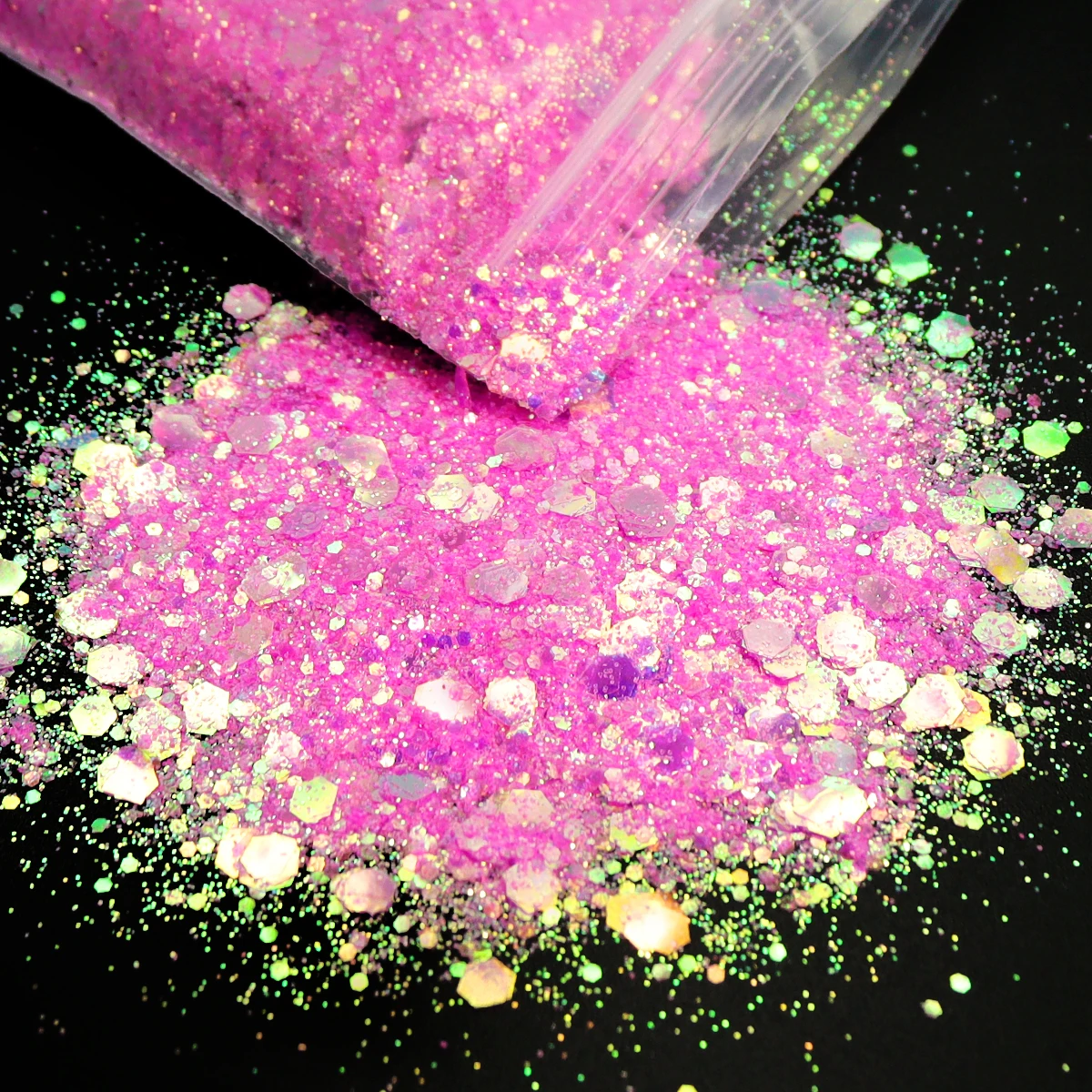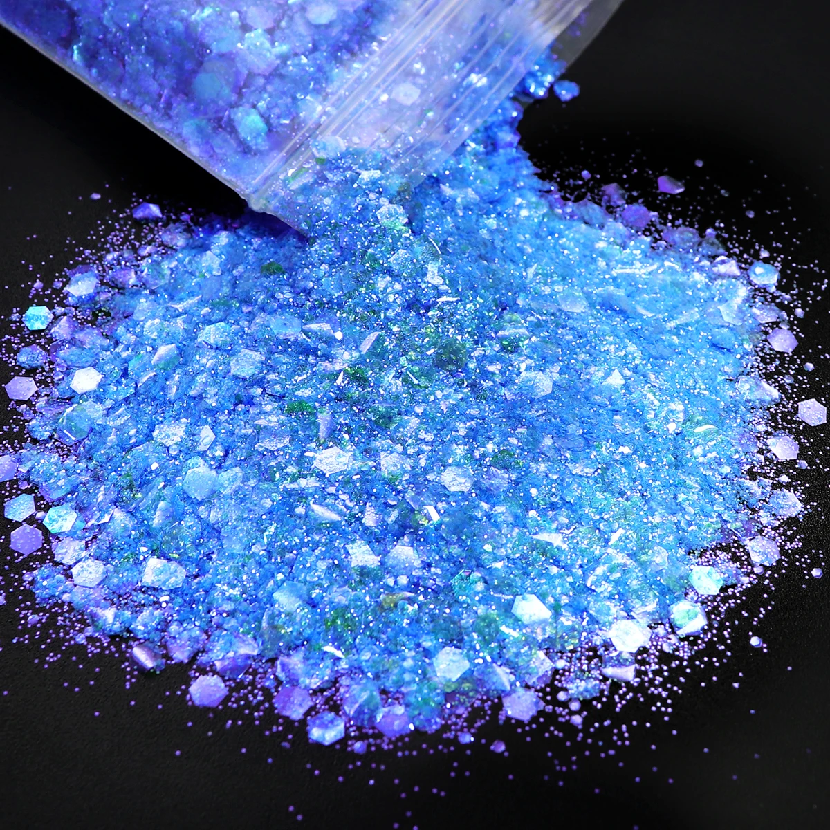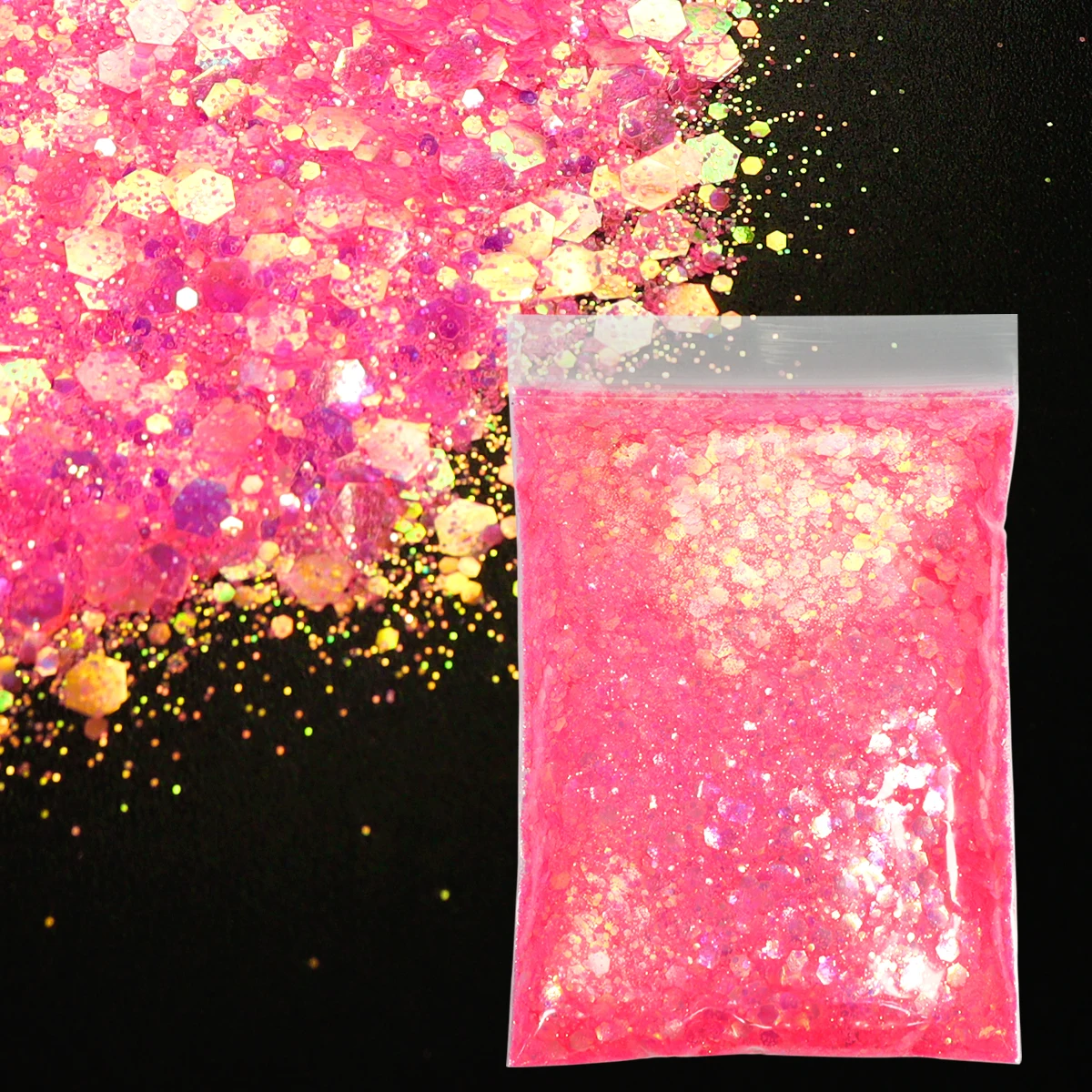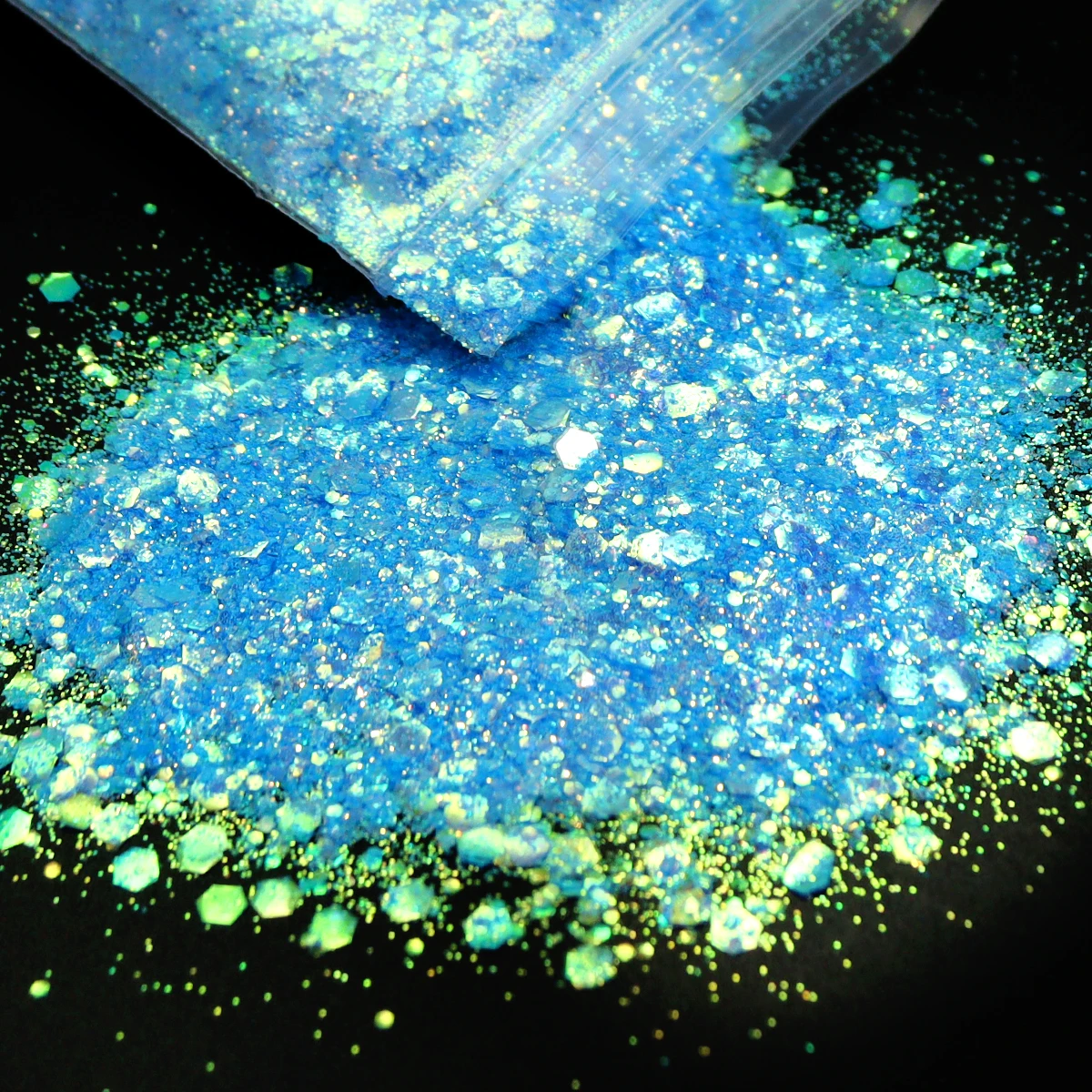 50G Aurora Color mezclado forma hexagonal brillo grueso lentejuelas resina epoxi molde de silicona relleno para Gel UV fabricación de joyas artesanales