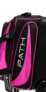 El ruta de lujo Doble Roller de Pyramid se adapta fácilmente a dos bolas de bolos, un par de zapatos de bolos (hasta el tamaño de los hombres 16, Tamaño de los hombres de EE. UU. 15/14 Ancho para SST/zapatos de rendimiento), Varios accesorios, y pertenencias personales cruciales para tu juego.