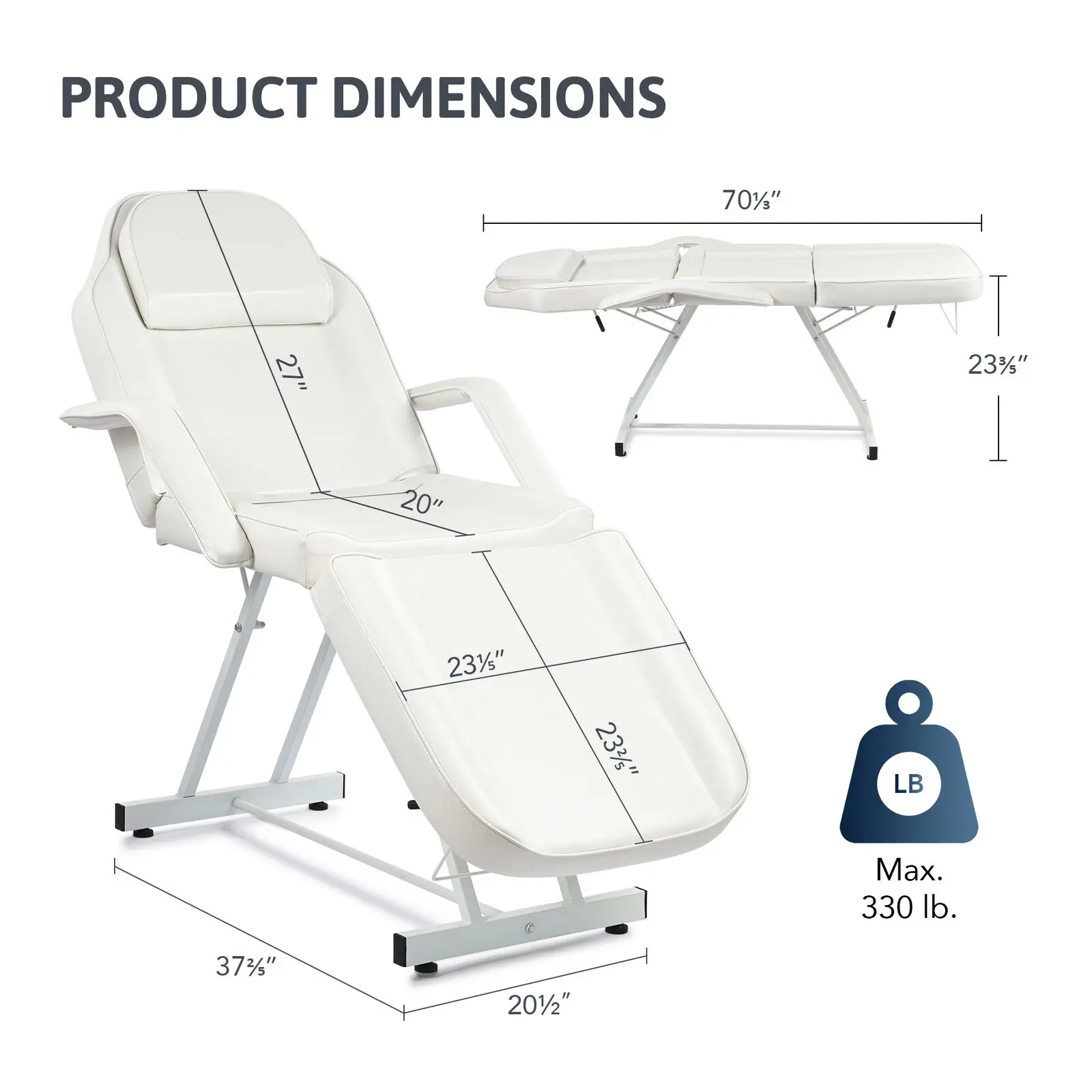 VERSATILE SPA TABLE: This multipurpose 5 pie 10 inch massage table and chair checks all the boxes for what you need in a professional massage platform, providing optimal comfort along with operational excellence for a host of body treatments from massages, tatuajes, depilación, faciales, extensiones de pestañas, manicures, y más