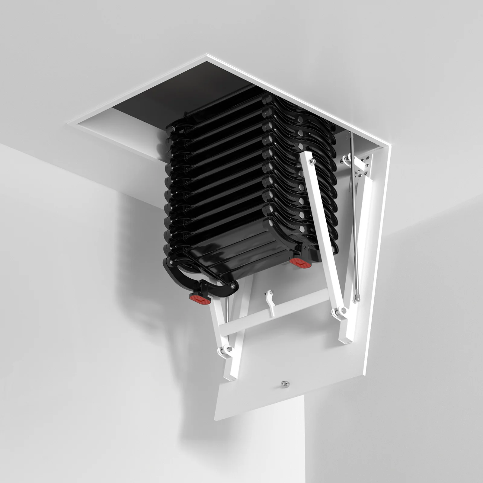 Con el control remoto incluido, you can easily operate the attic ladder with just the push of a button. Say goodbye to struggling with heavy attic ladders and let this electric ladder do the work for you. The sleek and modern design of the Areyourshop electric attic ladder will complement any home decor, adding both style and functionality to your space.