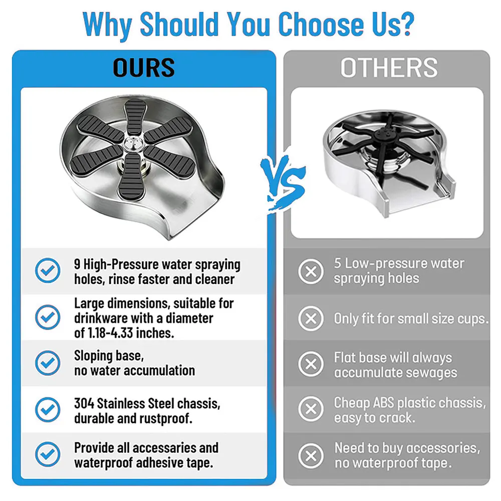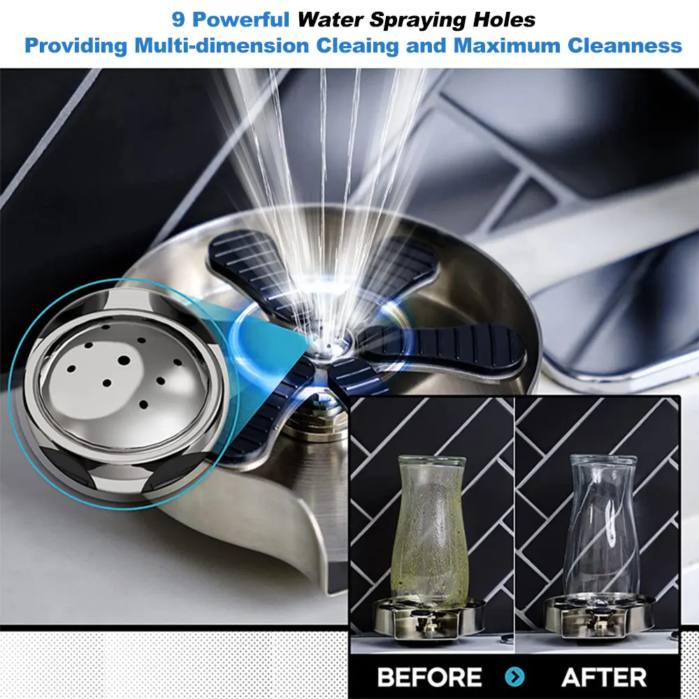 1.[Boquilla giratoria] El elevador de vidrio tiene múltiples orificios de pulverización de alta presión, innovador 360 ° Jet de agua giratoria de ángulo múltiple, y es más efectivo cuando se combina con un cepillo de limpieza para limpiar a fondo su taza sin remojar ni fregar.