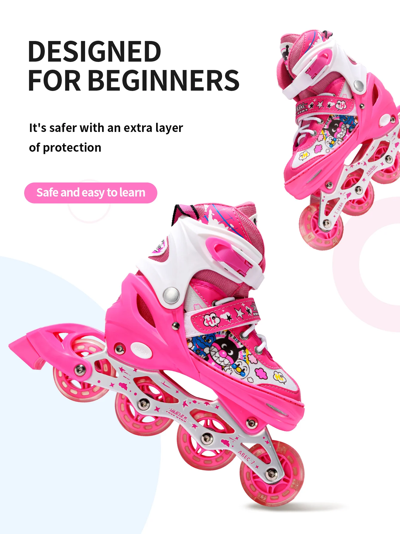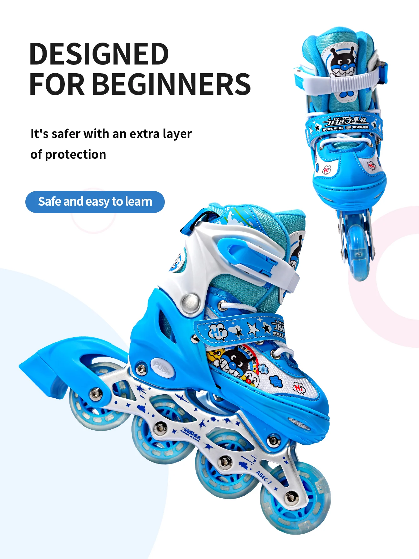Patinadores de seguridad para principiantes: Estrella gratis 1 Par de zapatos en línea de confort de superficie suave de viento deportivo con característica de flash ajustable
