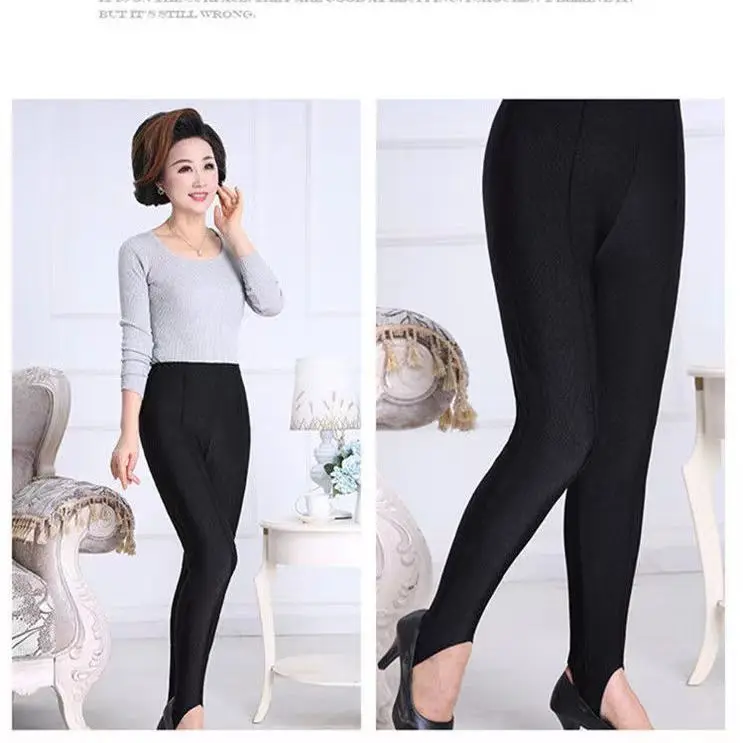 Black Women Stirrup Yoga Leggings Plus Size High Waist Step on Foot Length Stretchy Workout Pants