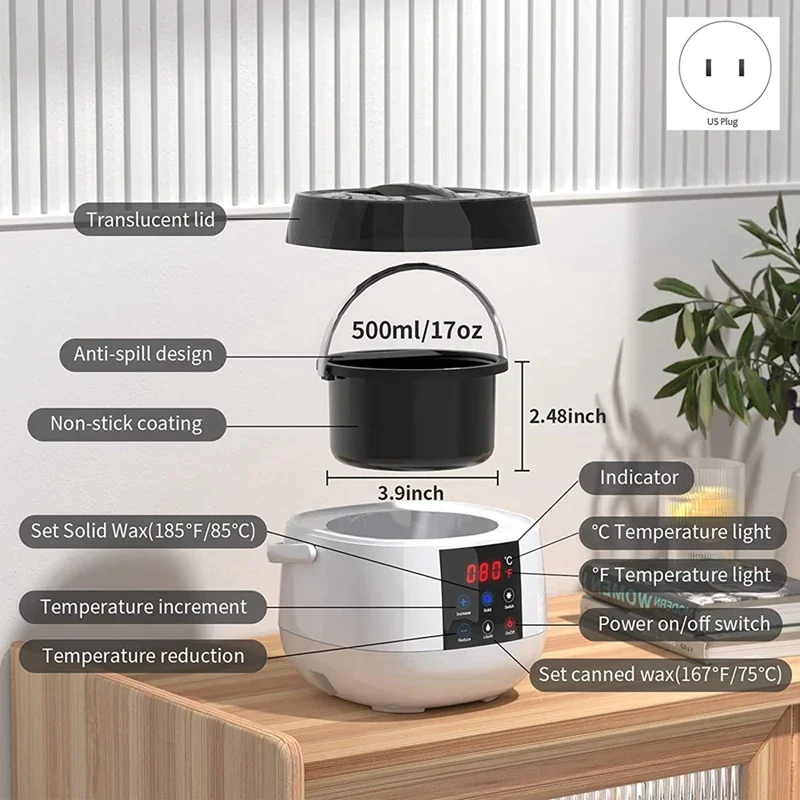 The candle making wax melting pot is a tool for melting wax to make candles. It is designed for adults and beginners with an LED temperature display for accurate temperature control. Specifically used for melting soy wax, this melting pot makes the candle making process easier and more convenient. It is a useful tool for anyone interested in creating their own candles at home.