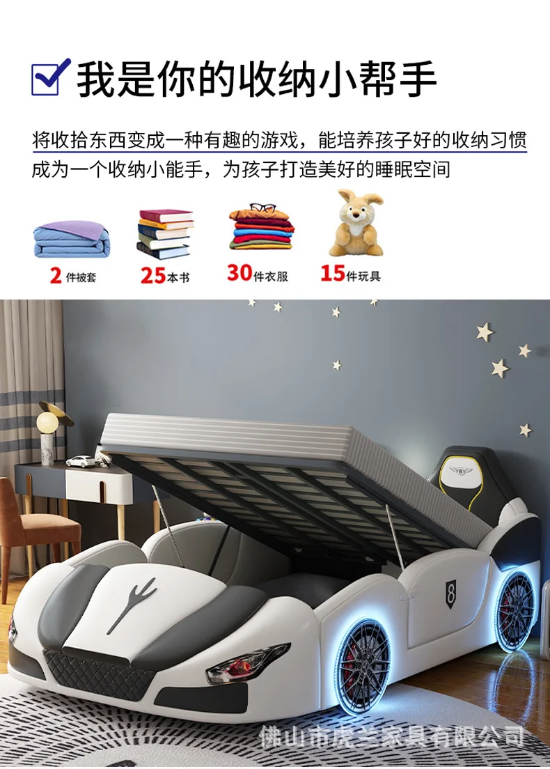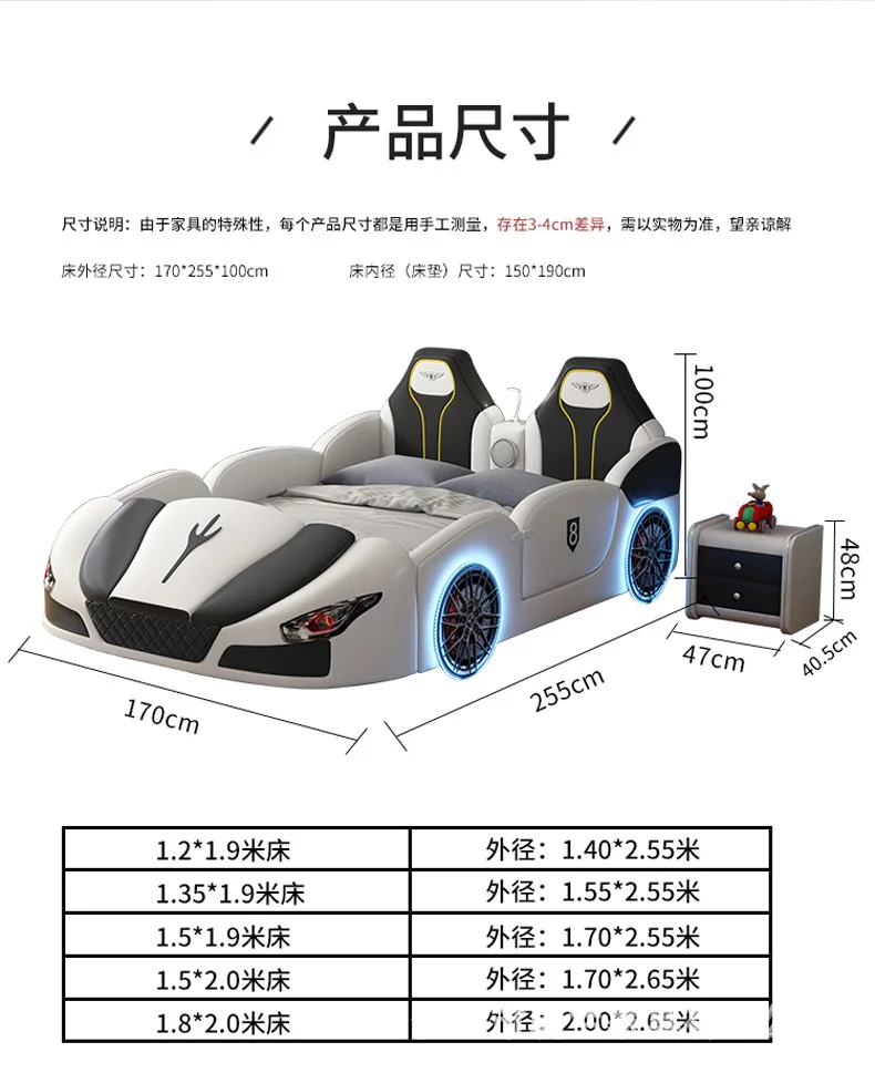 Introducing our Children’s Furniture Car Bed – the perfect addition to any boy’s bedroom! With its sleek sports car styling and racing lathe design, this bed is sure to be a hit with your little speedster.