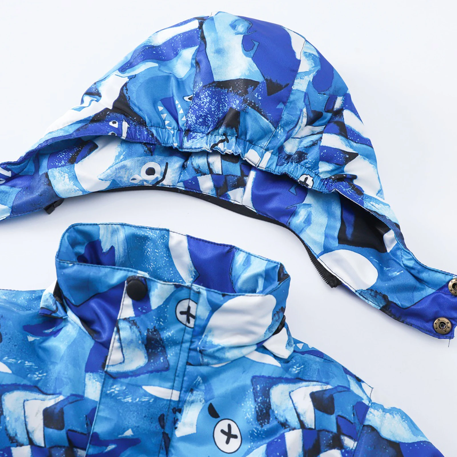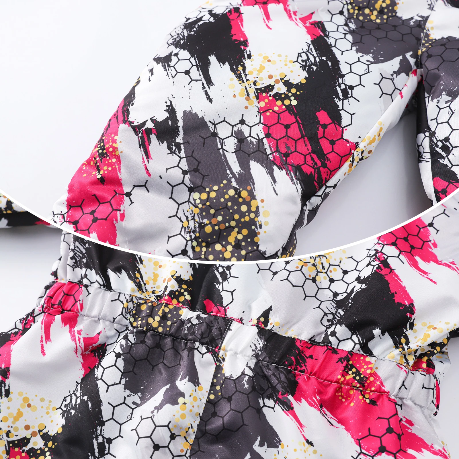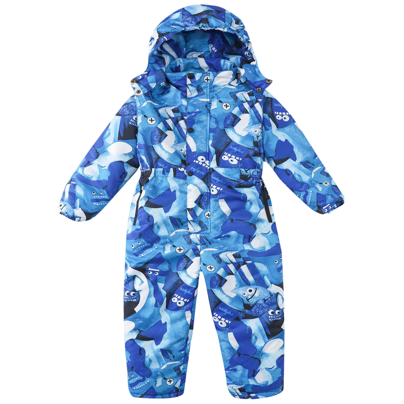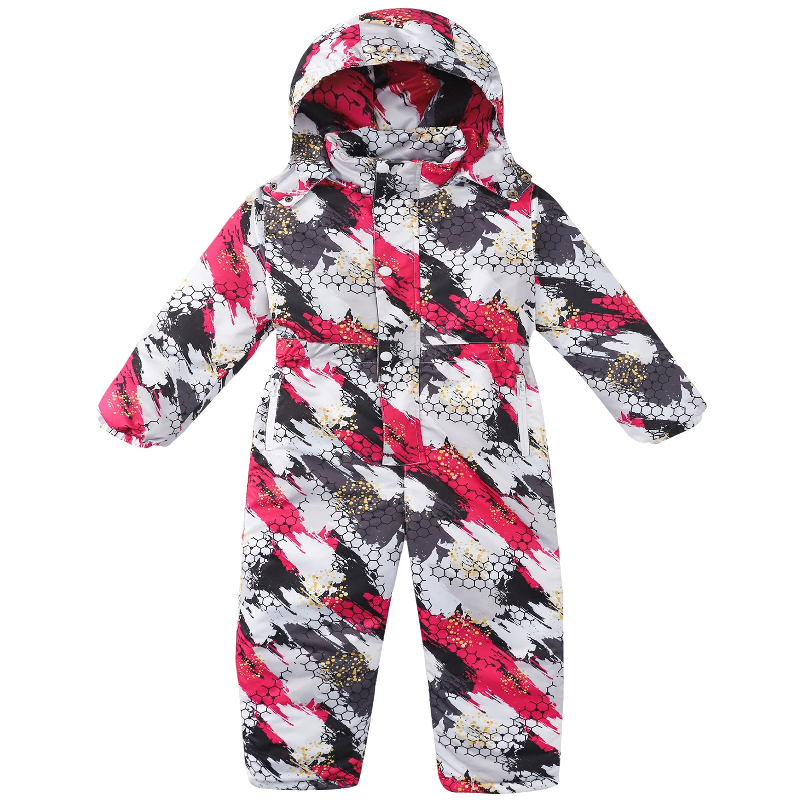 Kids Ski Suits One-piece Jumpsuit Winter Boys Girls Hooded Printed Waterproof Windproof Children's Warm Snowboarding Wear