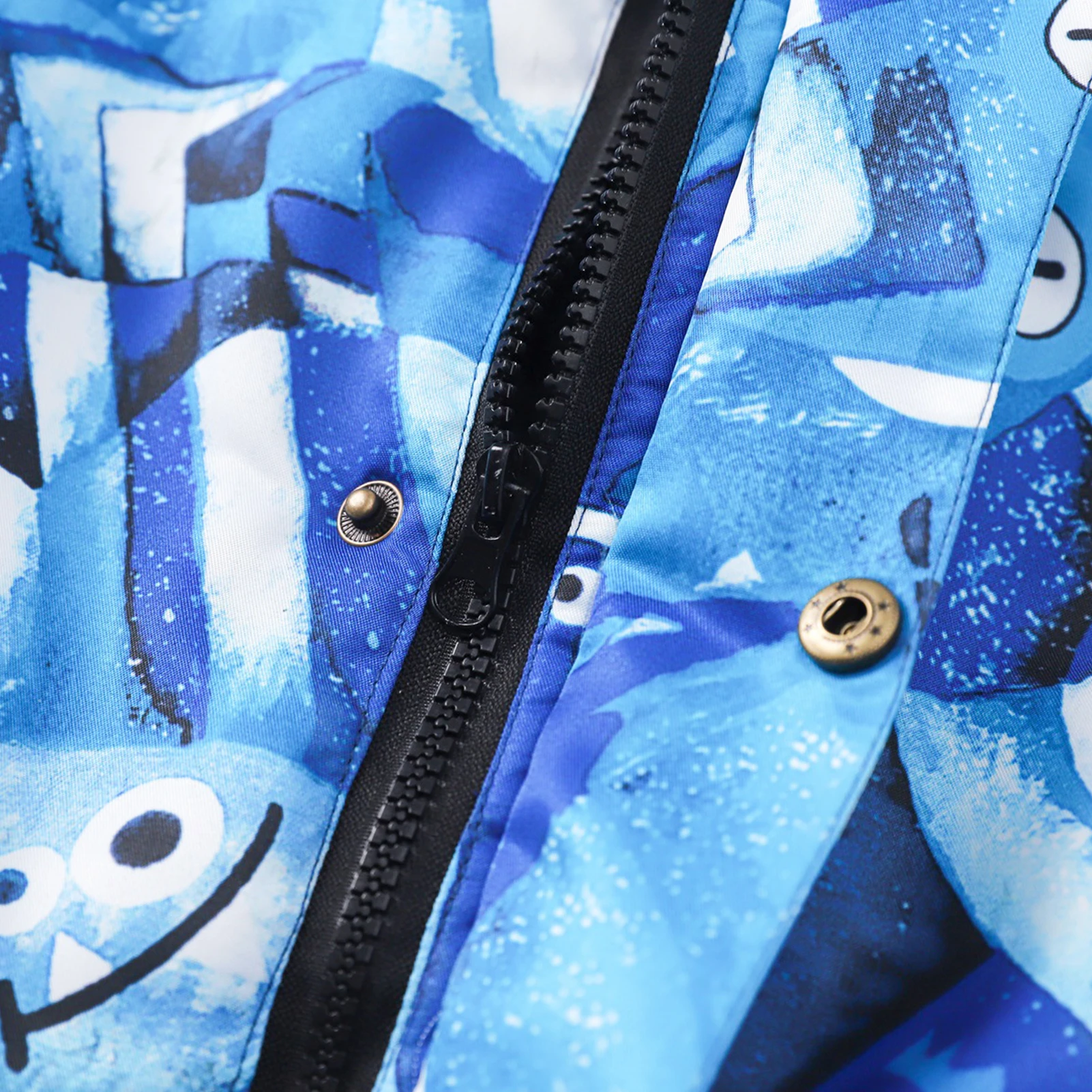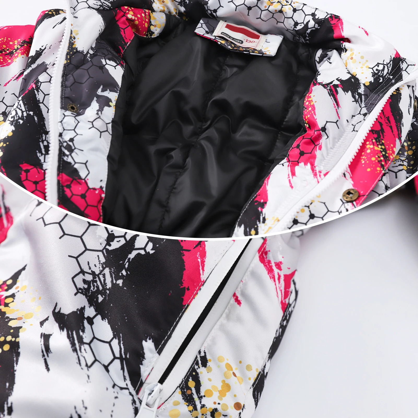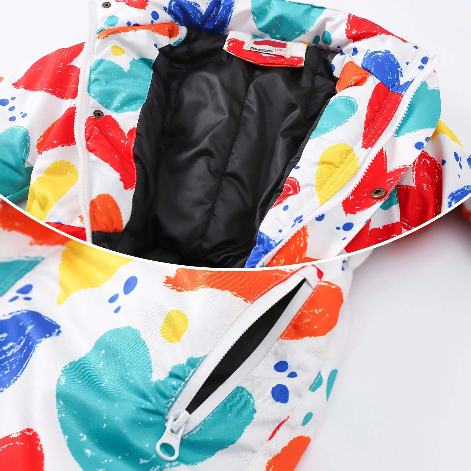 1. High quality waterproof polyester fabric lining, with good wind resistance, transpirabilidad, dirt resistance, and easy cleaning. Paired with fashionable graffiti prints, it is highly favored by children. Like a little angel in the snow, it attracts attention.