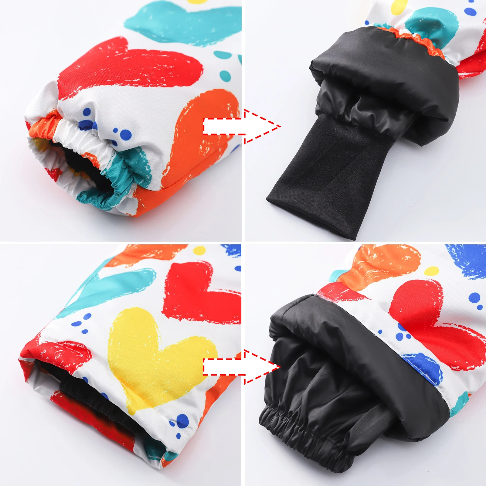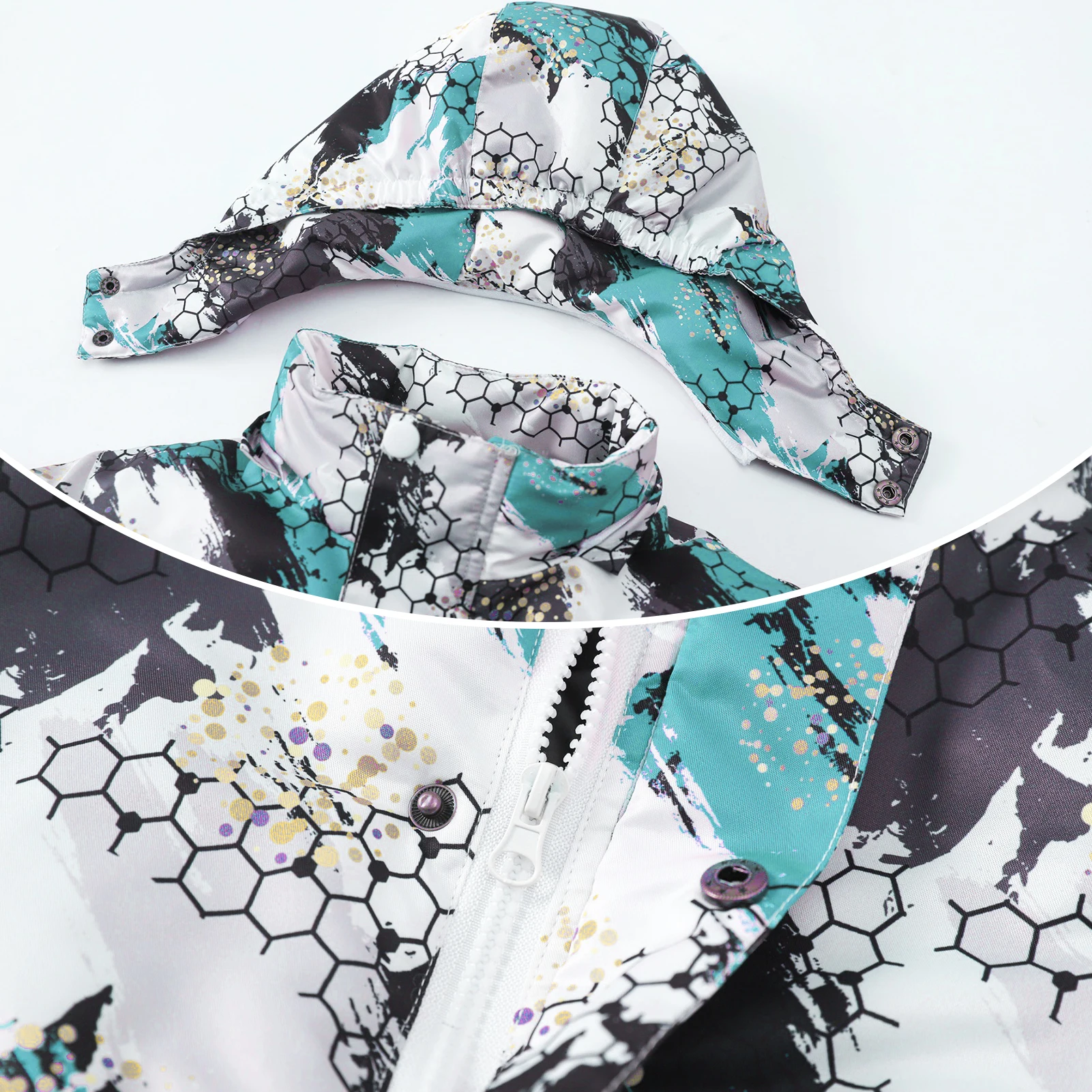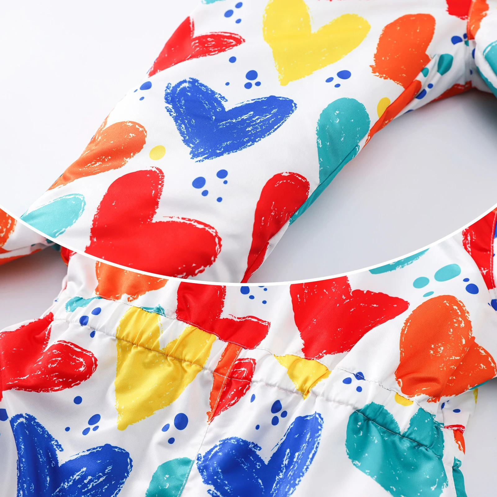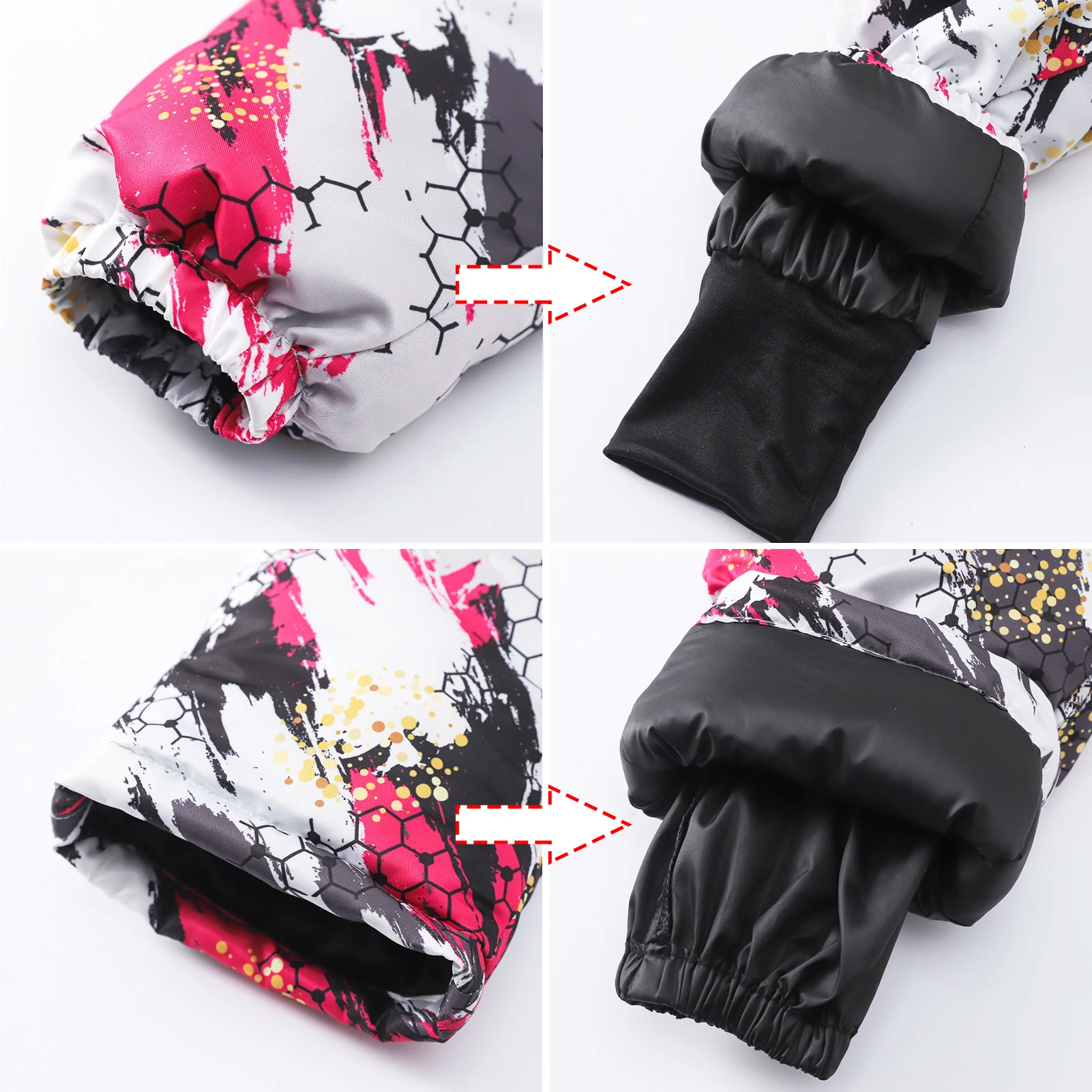 1. High quality waterproof polyester fabric lining, with good wind resistance, transpirabilidad, dirt resistance, and easy cleaning. Paired with fashionable graffiti prints, it is highly favored by children. Like a little angel in the snow, it attracts attention.