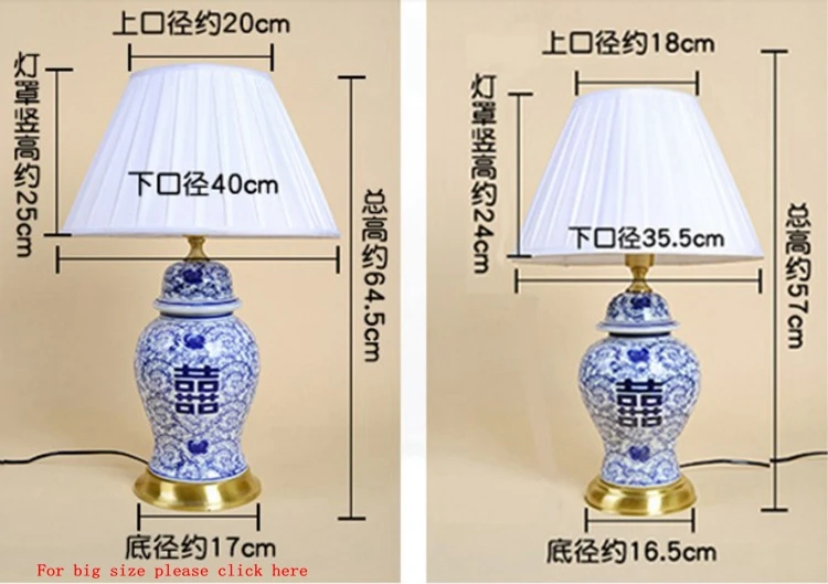 These Chinese traditional blue and white porcelain ginger jar table lamps are perfect for adding a touch of cultural elegance to any bedroom. The lamps are made from high-quality porcelain and feature intricate blue and white designs. They are both functional and decorative, providing soft lighting and unique style to the room. These lamps are a great way to incorporate traditional Chinese decor into your home, while also adding a pop of color and personality to your bedroom. En general, these ginger jar table lamps are a beautiful and timeless addition to any bedroom decor.