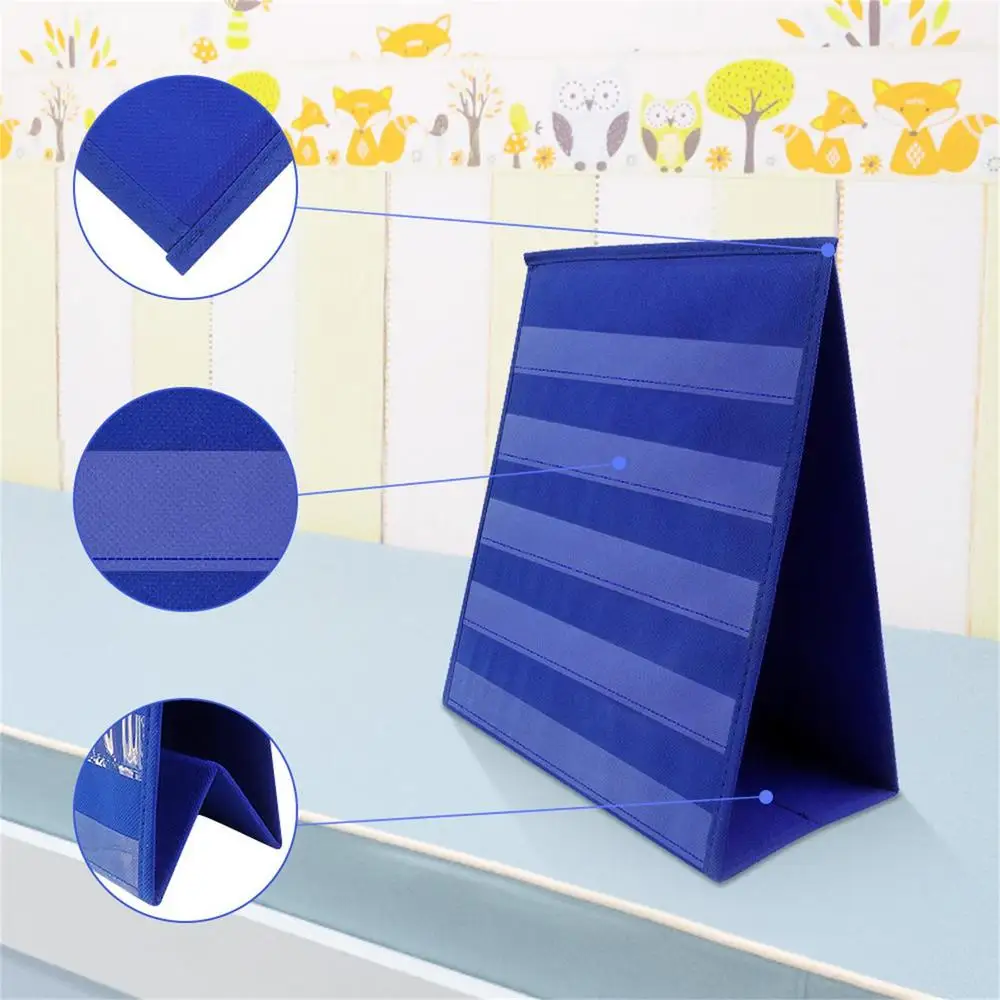 2.Materials of Good Quality: This pocket chart is odorless and made of high-grade materials that are eco-friendly and durable. It is lined with high-density cardboard and strong non-woven fabric for reliable support.