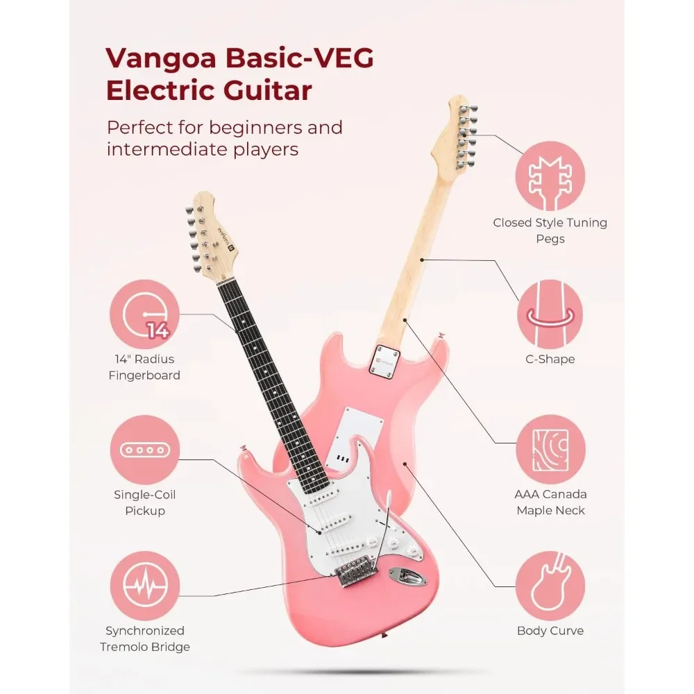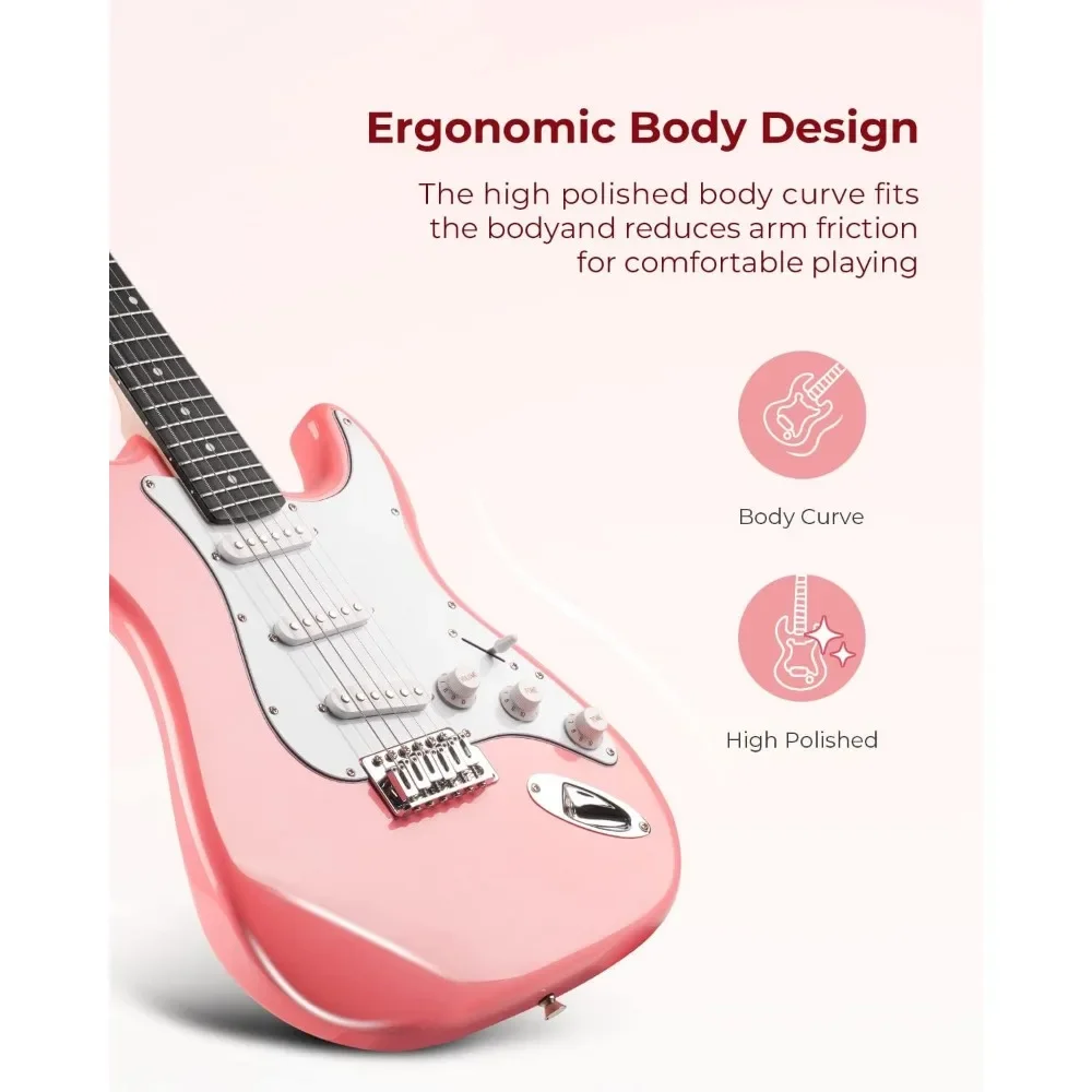 - ✅[Comfortable to Play] C- shaped Canadian maple neck with 14″ radius fingerboard is comfortable for chords or fast lead playing. A double-cutaway body for classic styling, comodidad, and easy to access the higher register of the fretboard. The poplar body with a curve shape is ergonomic and easy to play with sitting down, yet is light enough to make playing standup a breeze