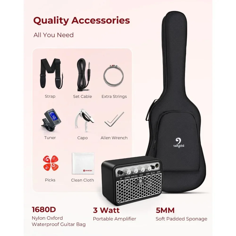 - ✅[Complete Electric Guitar Beginner Kit] It comes with everything you need to get started with, including a 1680D Oxford 5mm padded waterproof gig bag, 10W amplifier, cuerdas extra, shoulder strap, clip-on tuner, capó, selecciones, tremolo bar, cable, Allen key, cleaning cloth and a user manual. It is a great choice for beginners, intermediate players, adolescentes, y adultos