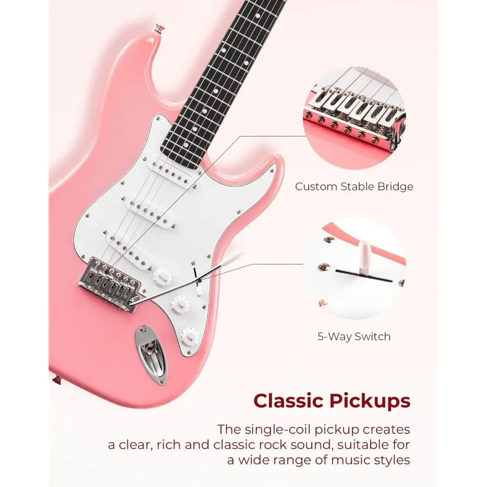 - ✅[Vintage Single-coil Pickups] The full-size electric guitar features three single-coil pickups providing clearer, más brillante, and well-balanced tone with higher frequency response and better effects on distortion. Suitable for many music styles, such as pop, funk, jazz, roca, and blues