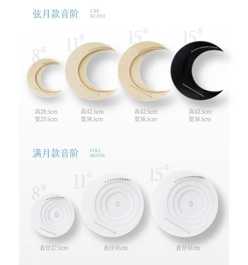 Arpa de dedo de madera de luna creativa Hluru 15 Cuerdas Lyre Harp C Key Piano de lira profesional portátil para instrumentos de cuerda principiantes