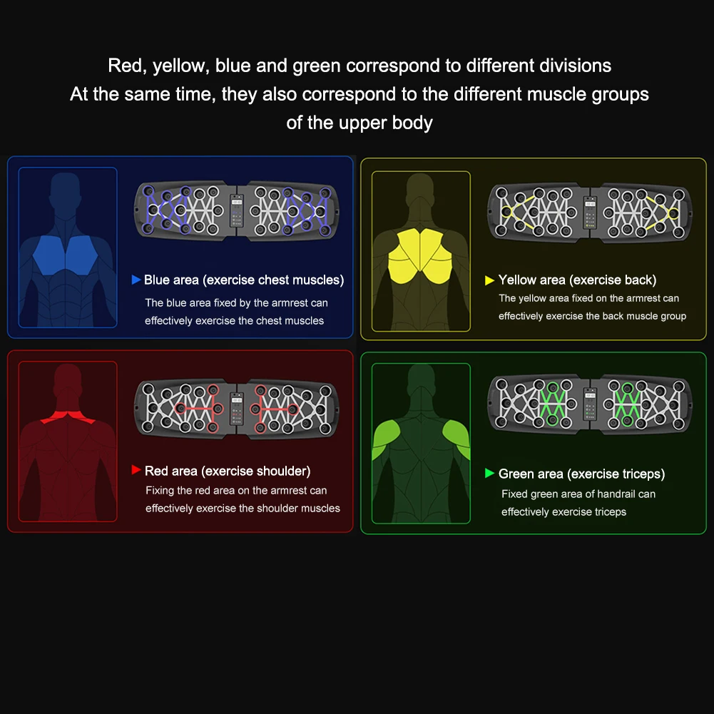 4. Accurate training objectives in four areas: exercise different muscle groups accurately. Rojo, amarillo, blue and green correspond to different areas, and also correspond to different muscle groups in the upper body.
