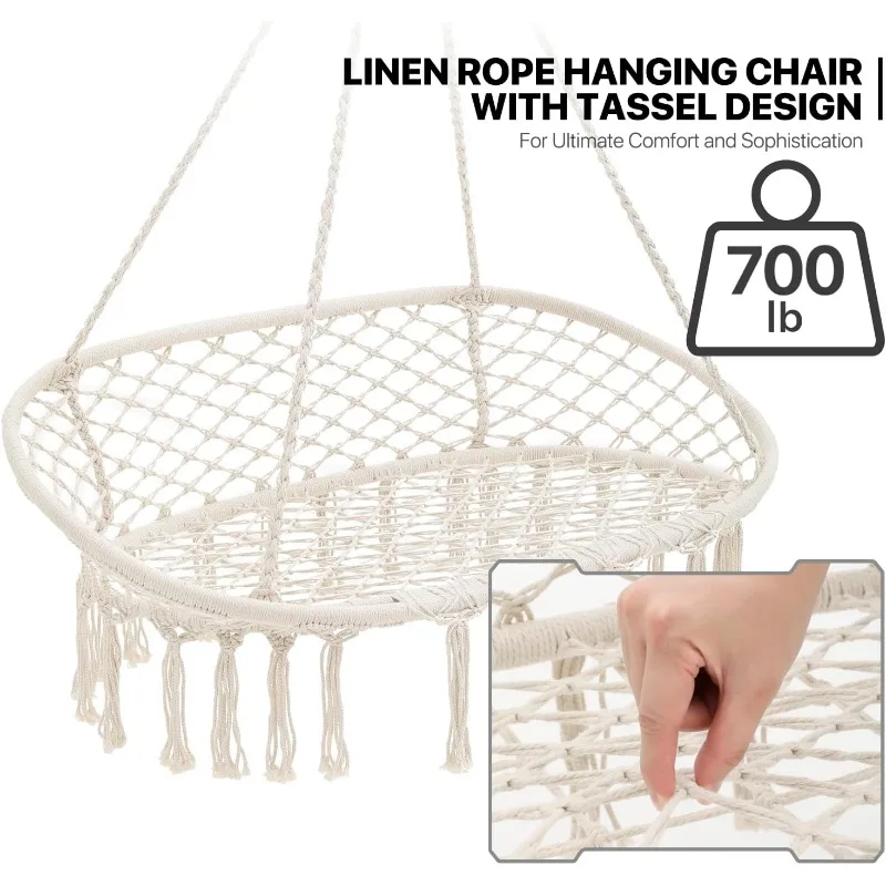 - Diseño robusto y elegante – Columpio estilo hamaca bohemio chic hecho a mano, patrón entrelazado elegante y borlas drapeadas elegantes, más respaldo arqueado, combinado con características elegantes y prácticas, para brindarle una hermosa y cómoda silla tipo hamaca.