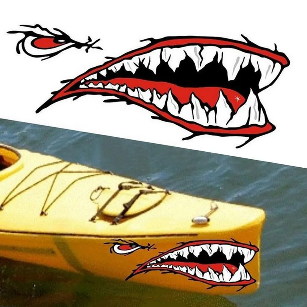 1.Personalized shark teeth mouth stickers with red eyes and red black gill slits, looks creative and cool.