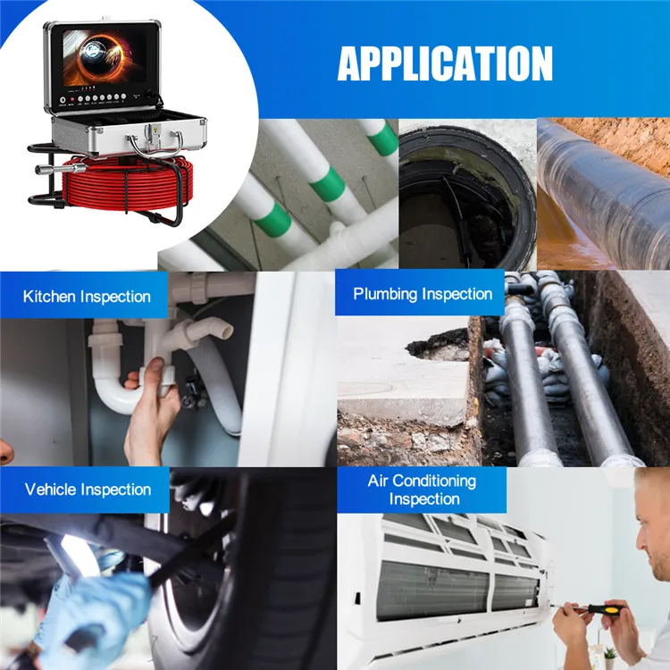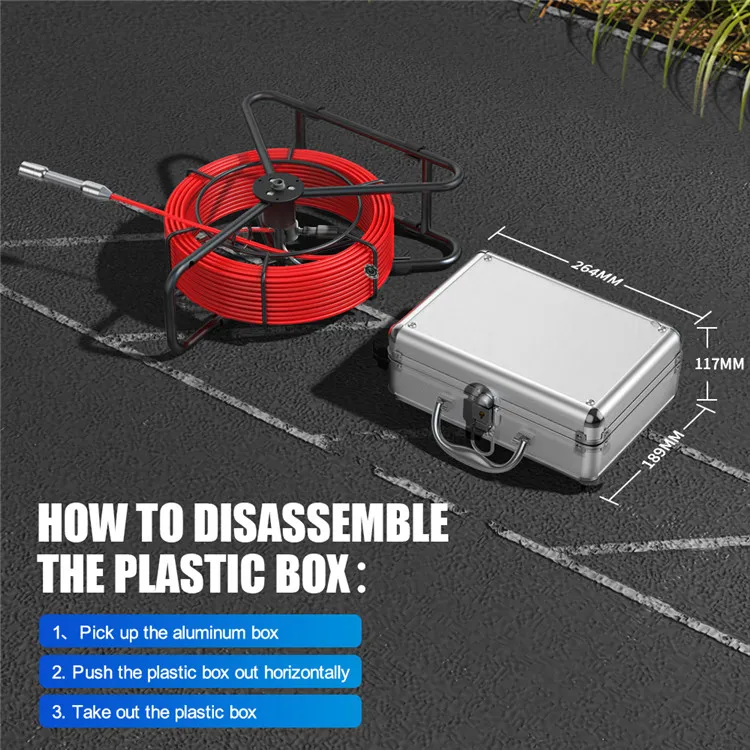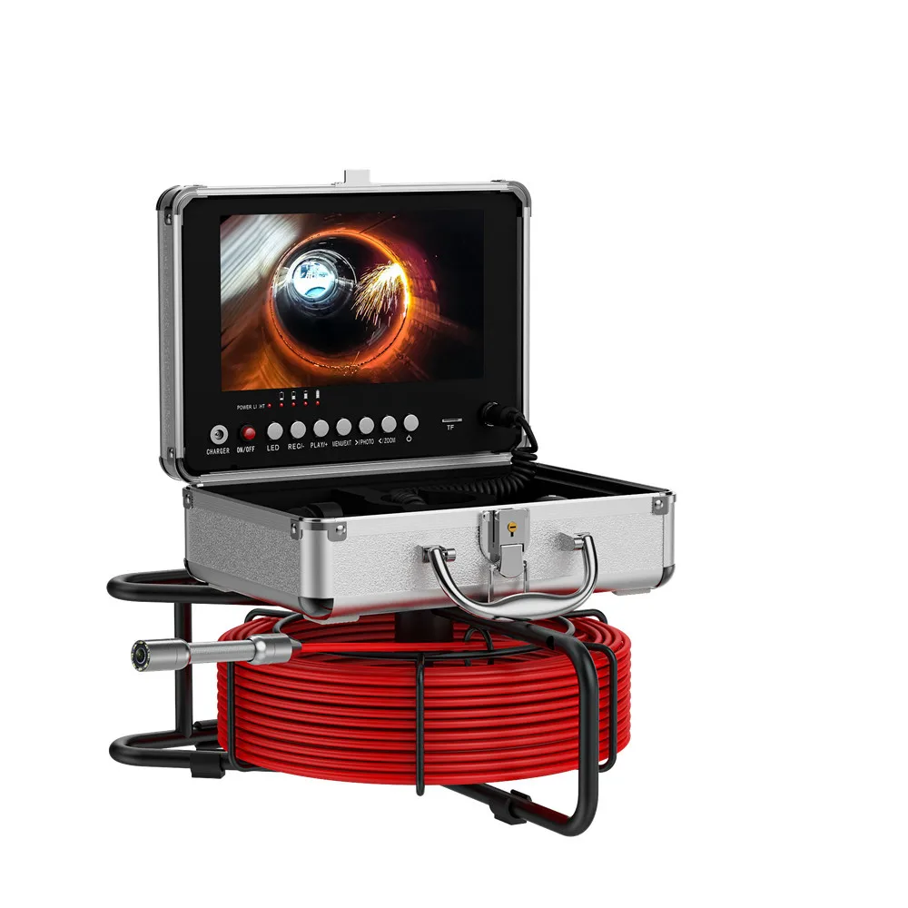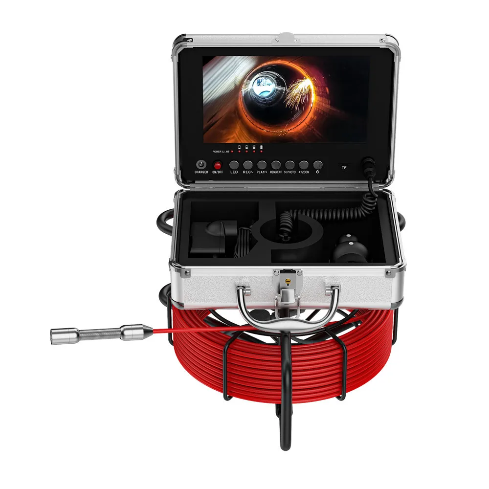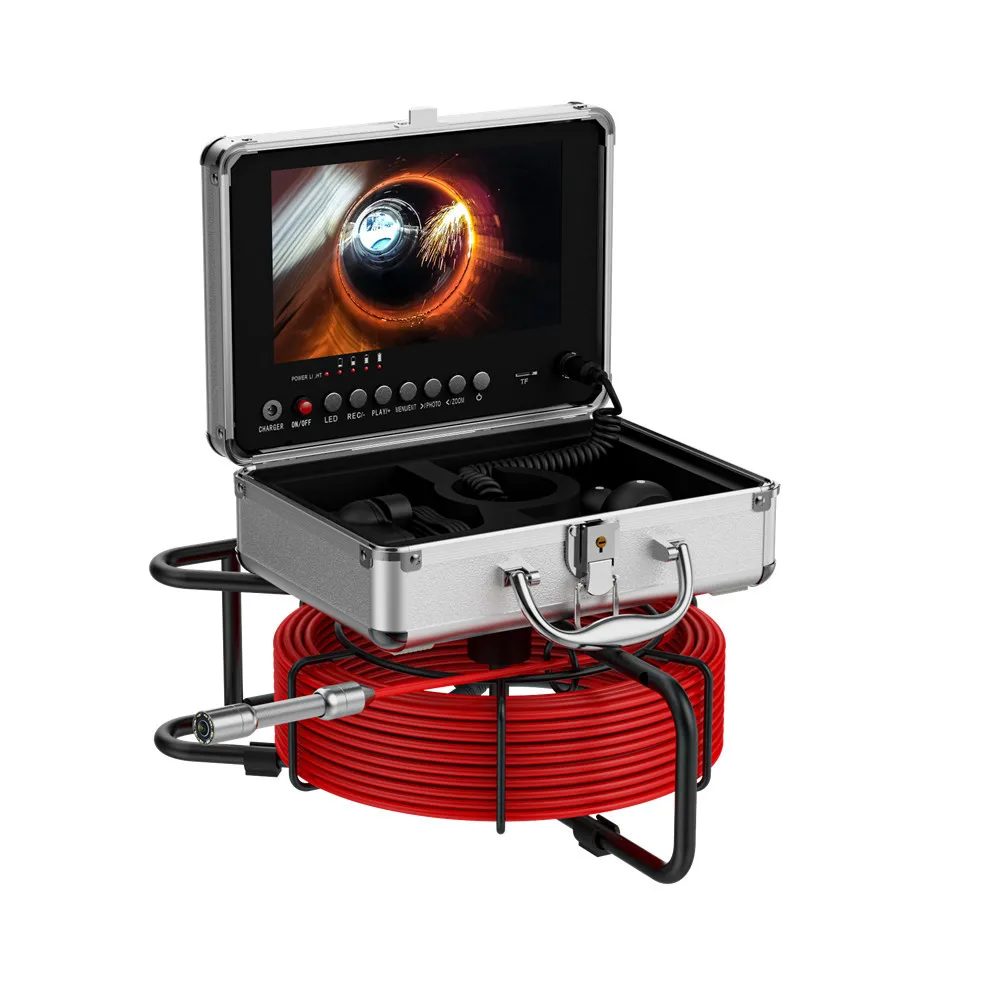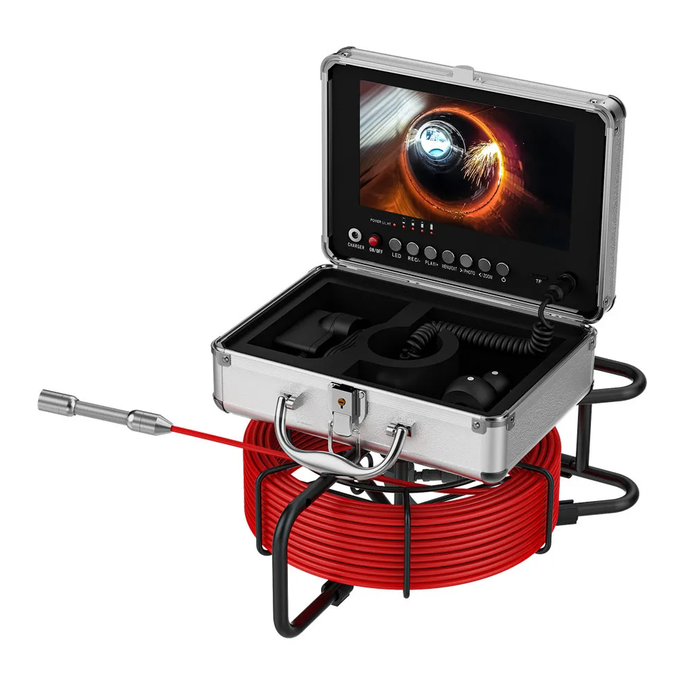 La cámara profesional de inspección de tuberías de drenaje/alcantarillado está diseñada con un 9 Monitor LCD IPS en color de pulgadas con visera para inspecciones en exteriores. El material del cable es varilla de fibra de vidrio.(diámetro: 5MM),anticorrosión/frío/tracción.