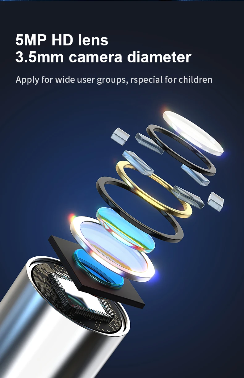 2.3.5lente ultra-slim mm: Nuestra herramienta de extracción de cera para el oído diseñada con lente ultra delgada de 3.5 mm que puede alcanzar el oído y las profundidades de los canales del oído de manera fácil y cómoda. Es adecuado para orejas de diferentes tamaños y se puede usar para el bebé, niños, Adulto y mascotas.