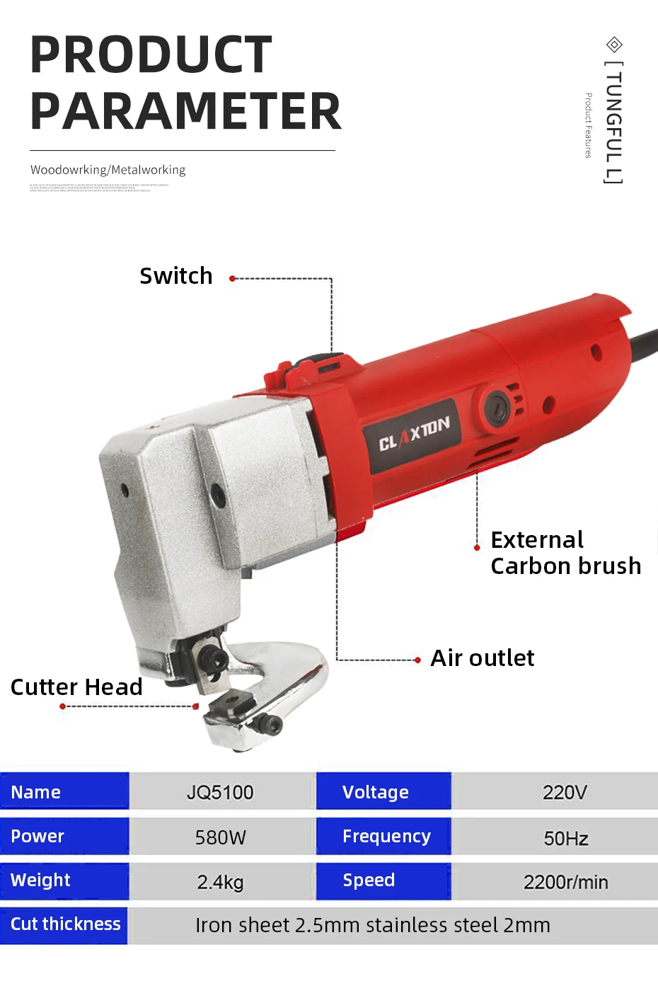 Electric Sheet Metal Shear Snip Electric Scissors 580W for Cutting Iron: