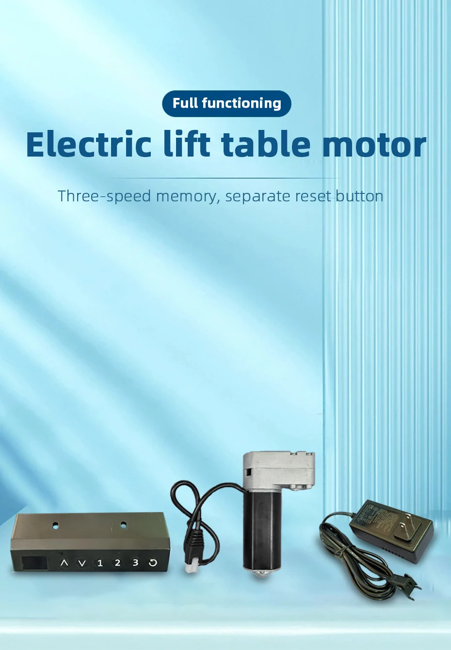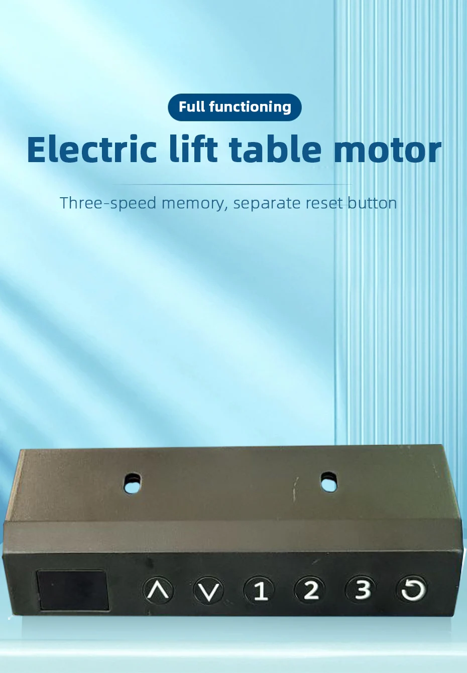 El kit de motor de escritorio con soporte eléctrico es un motor de 24 V CC con un sensor Hall incorporado diseñado para mesas elevadoras.. Permite un fácil ajuste de la altura de la mesa mediante un controlador manual.. El kit proporciona una manera cómoda y eficiente de transformar un escritorio normal en un escritorio de pie., promover una mejor ergonomía y reducir el comportamiento sedentario. El motor está diseñado para un funcionamiento suave y silencioso., haciéndolo adecuado para su uso en diversos entornos de oficina o hogar. En general, El kit ofrece una solución práctica para mejorar la salud y la productividad en el lugar de trabajo mediante el uso de escritorios de altura ajustable..