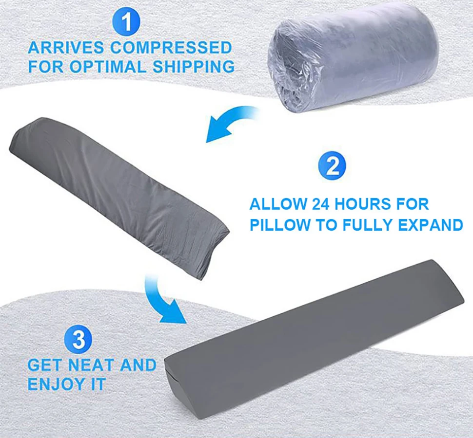 24 Hours to Fully Expand – Compressed for optimal transport. headboard pillow can keep its shape for a long time without deformation. Al mismo tiempo, it is soft enough to be used as a comfortable headboard cushion in bed.