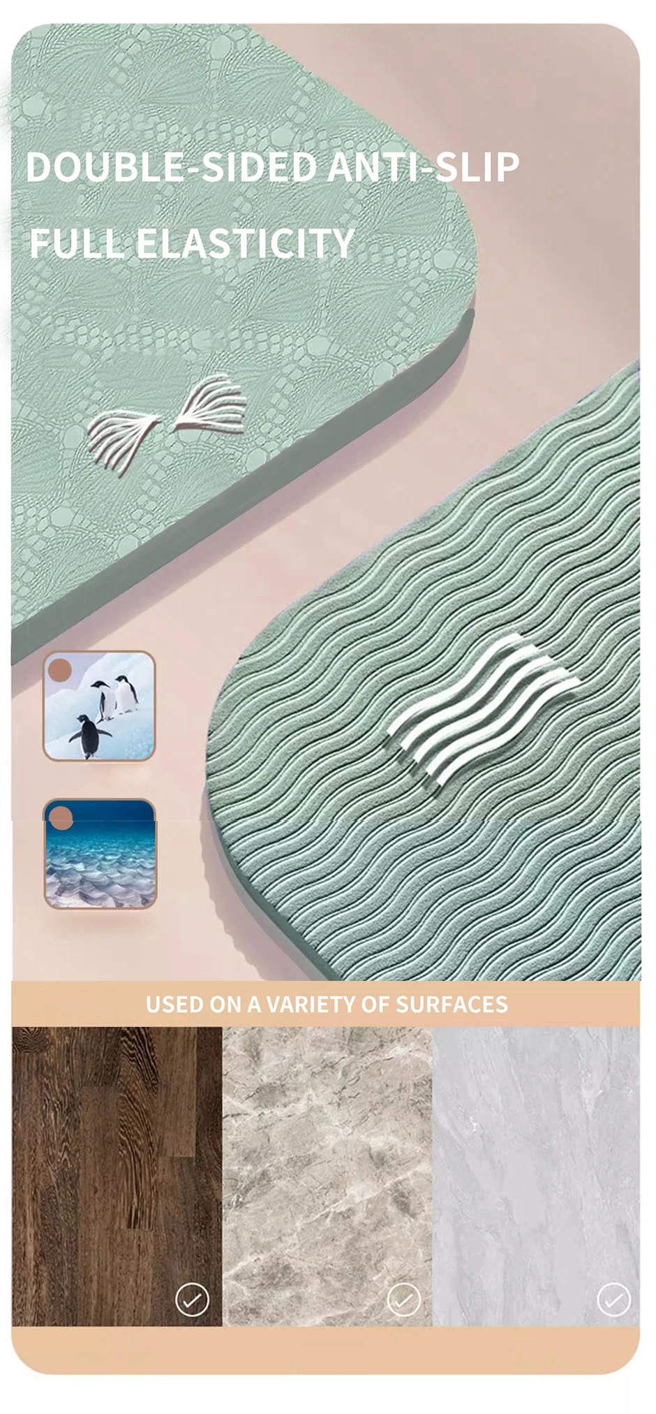 【Double-Sided Anti-Slip】: Features a double-sided anti-slip design, with a polygonal texture on the touches the skin side for a comfortable grip and a wave texture on the touches the floor side for stability and slip-resistance.