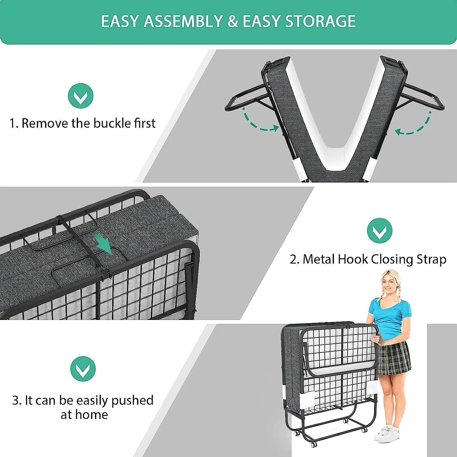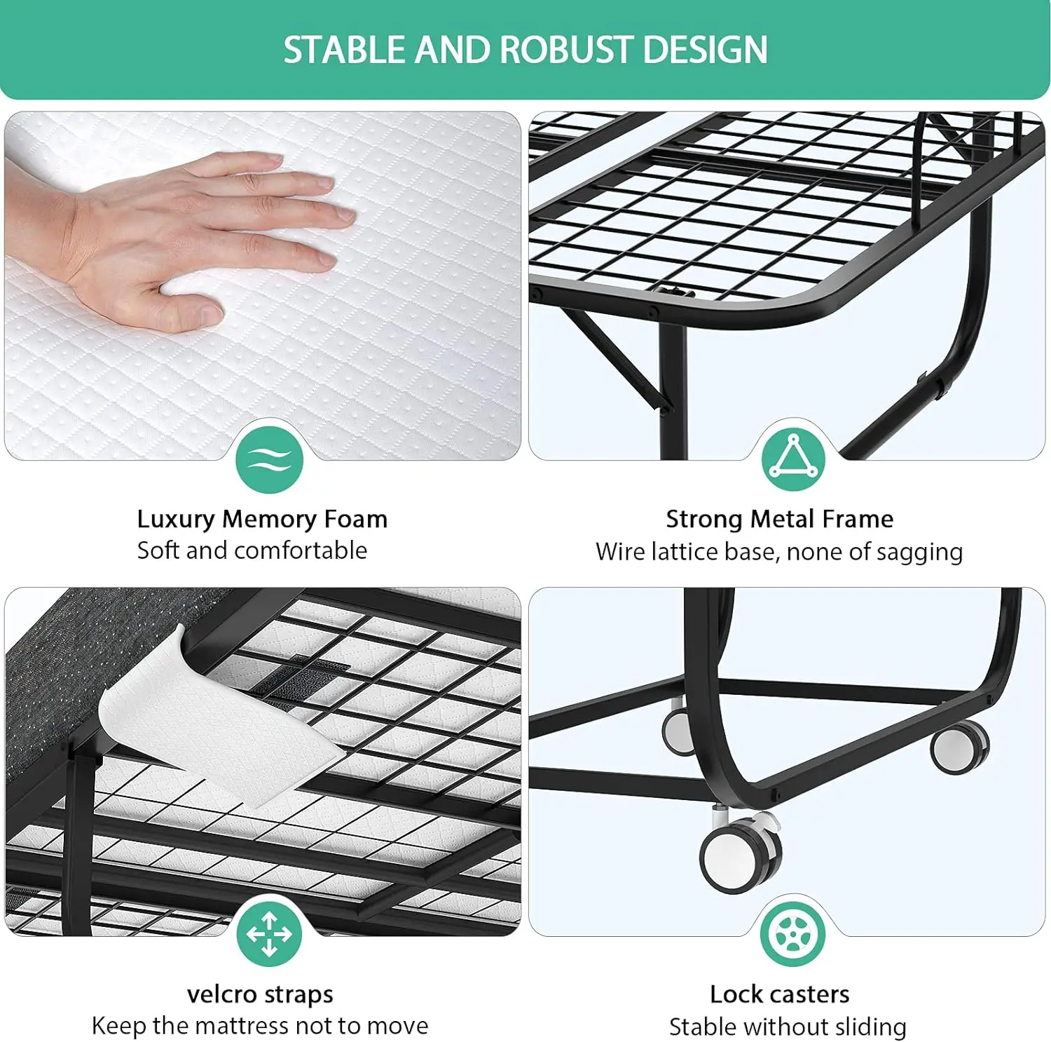 - ★ UPDATED FRIENDLY DESIGN – Compare with other rollaway bed, foxemart’s folding bed overcomes the shortcoming of the traditional bed mattress moving on the bed frame while you’re sleeping. viene con 2 which can fixed the mattress and make the mattress fits the bed frame more.