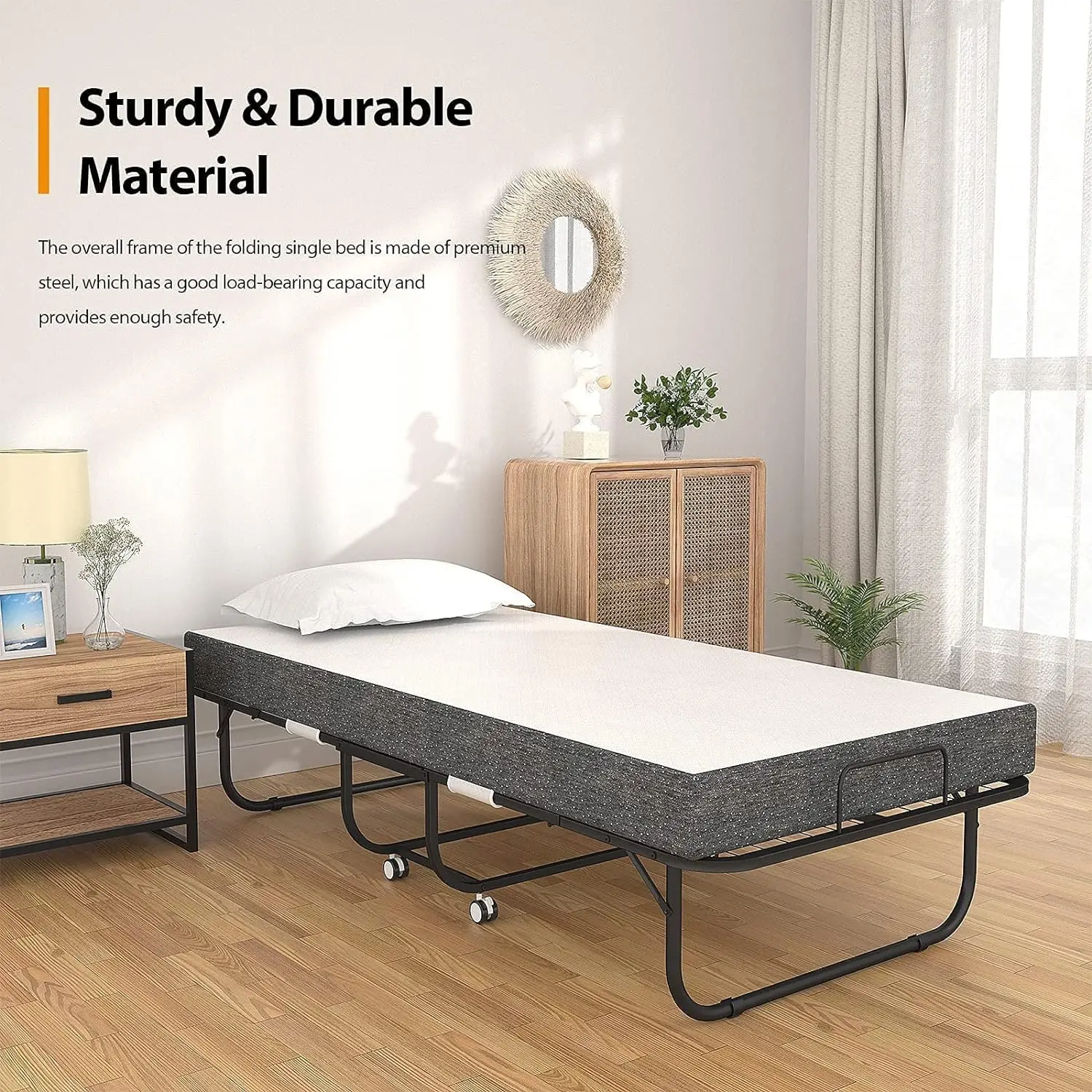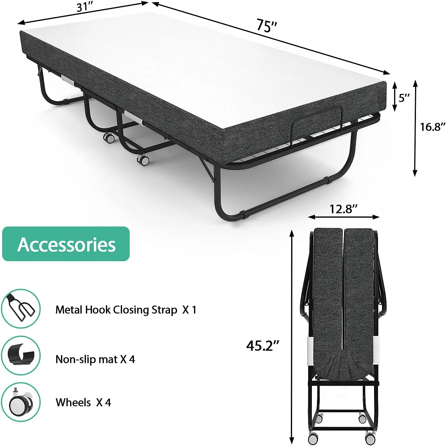 Foxemart Folding Bed with Mattress Portable Foldable Guest Beds Cot Size Rollaway Beds for Adults with Luxurious Memory 5 Inch Foam Mattress and Super Sturdy Frame, 75 X 31 Pulgada