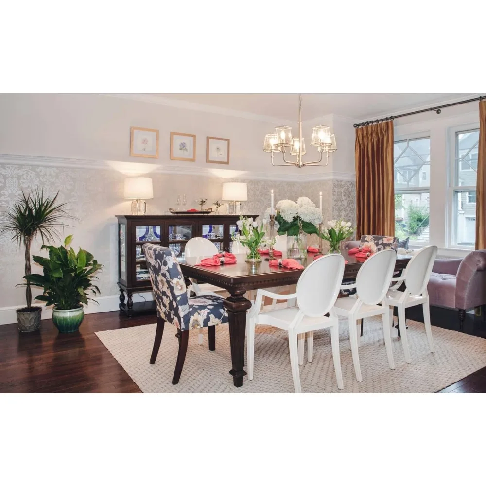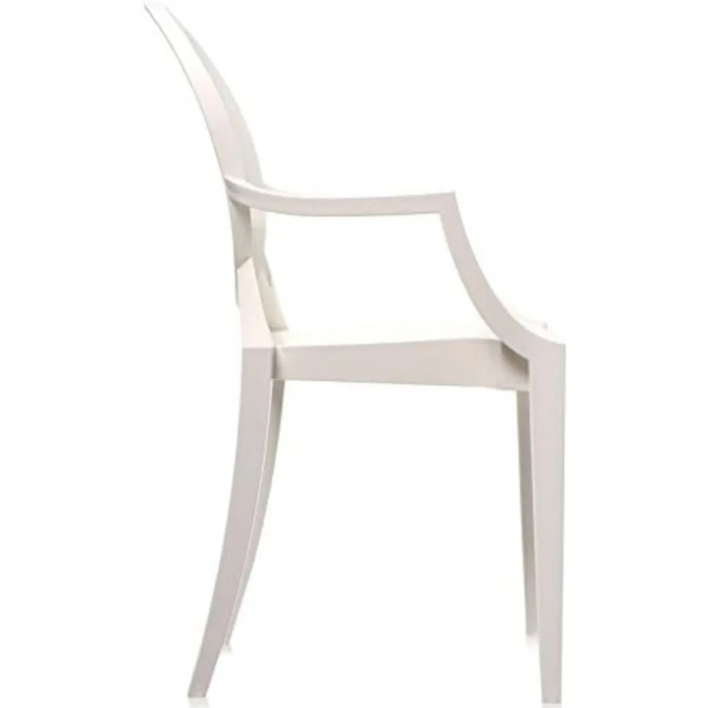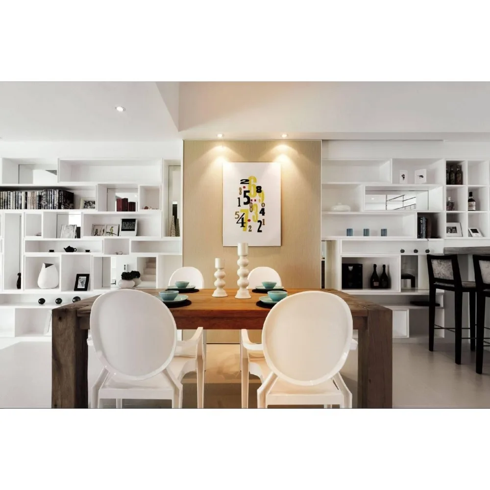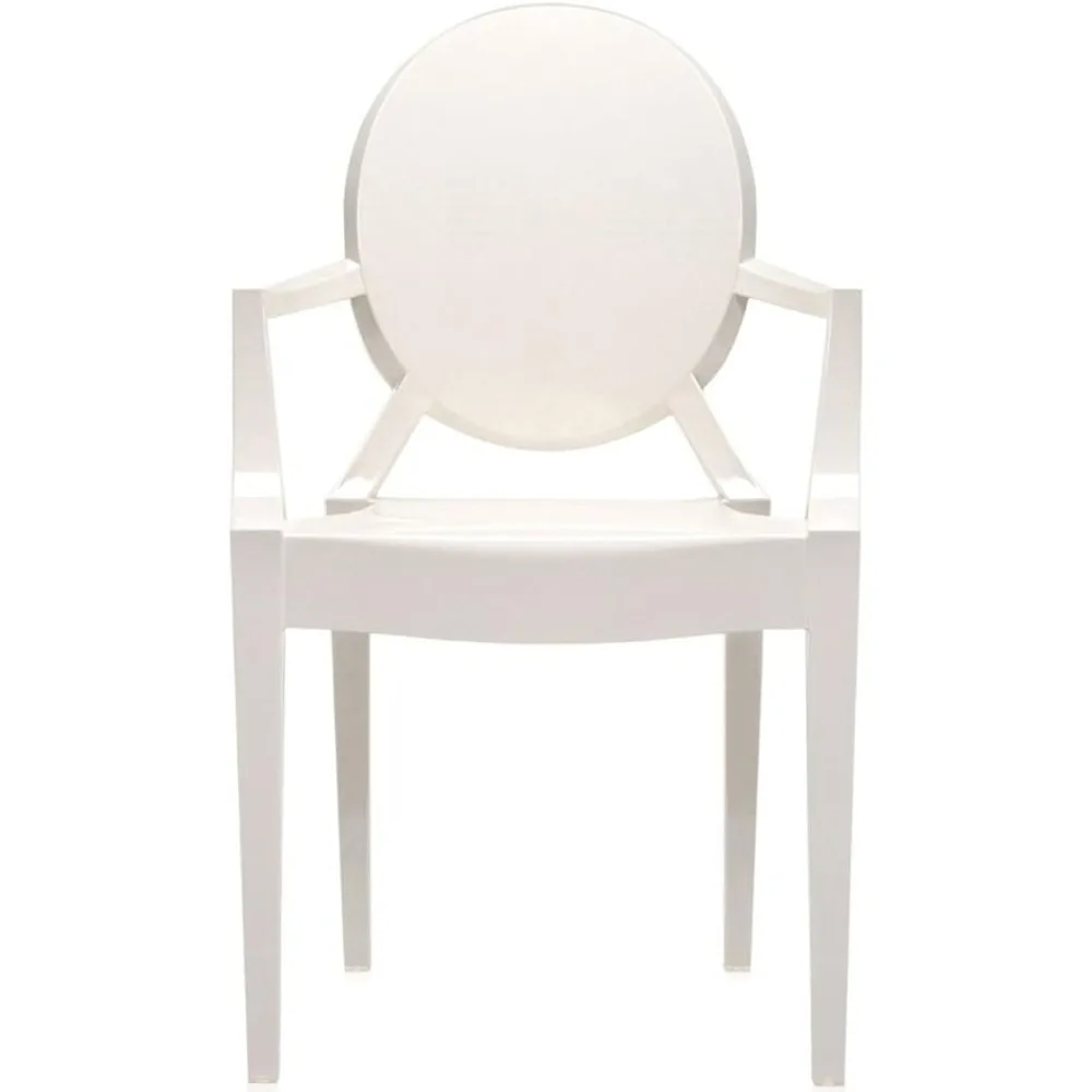The Ghost Arm Side Chair in white is a modern and luxurious addition to any dining room. This set includes chairs and a table, perfect for elevating your home’s furniture. With a sleek design and comfortable armrests, the chair offers style and function. Enjoy the convenience of free shipping for this high-end dining set that will surely enhance the aesthetics of your living space.