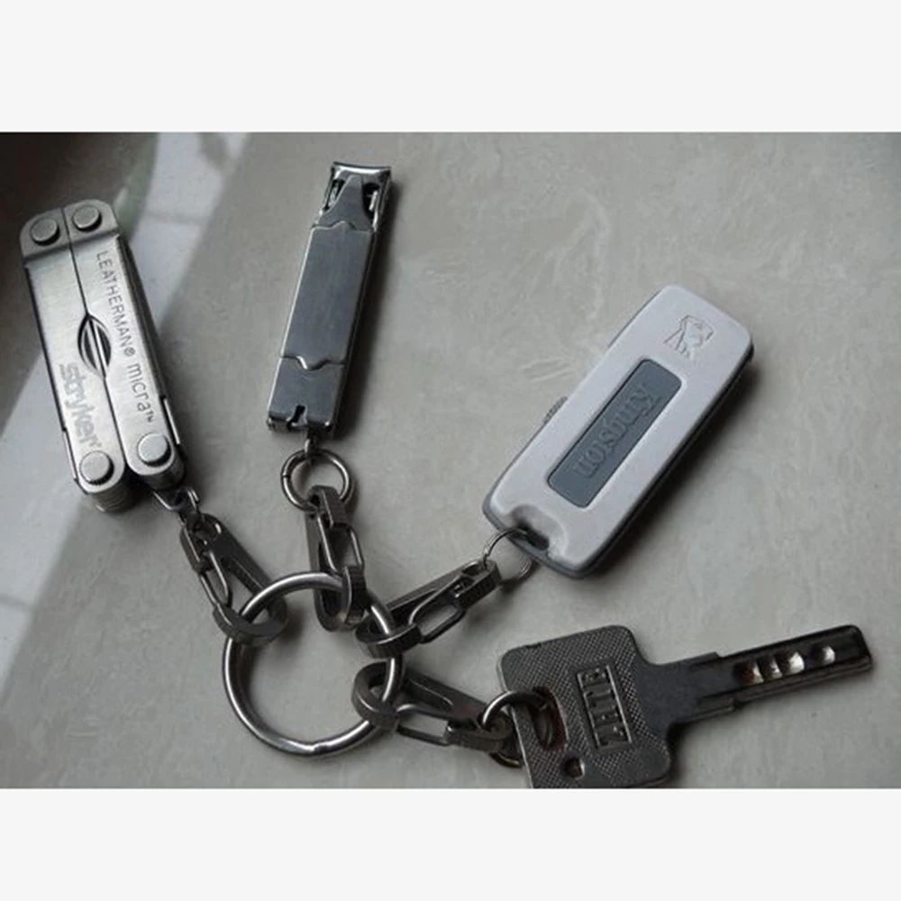 A hot sale item is a 1PC keychain with a mini spring backpack, clasps, climbing carabiners, EDC keyring, camping bottle hooks, and key ring. The item is compact and versatile, perfect for outdoor activities like hiking, cámping, and climbing. The keychain is convenient for holding keys and can easily be attached to bags or clothing. The sturdy design of the carabiners and hooks ensure durability and security for holding items. This keychain is a practical and trendy accessory for everyday use.