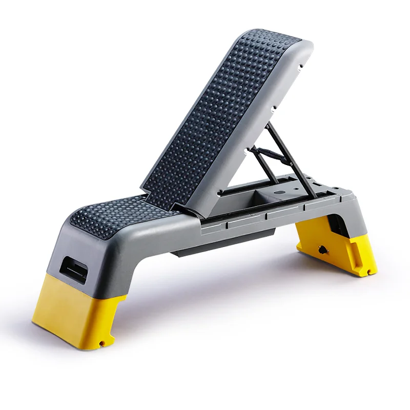 The Hot Sale Professional Multi Functional Adjustable Height Fitness Step Aerobic sit up Bench Deck Board Step Aerobic Bench is a versatile workout bench that allows for various exercises, including step aerobics and sit-ups. It features adjustable height settings to cater to different fitness levels and can be used for a wide range of exercises to improve strength and cardiovascular health. The bench is designed for professional use and is durable and reliable for intense workout sessions. En general, it is a great addition to any home gym or fitness facility.