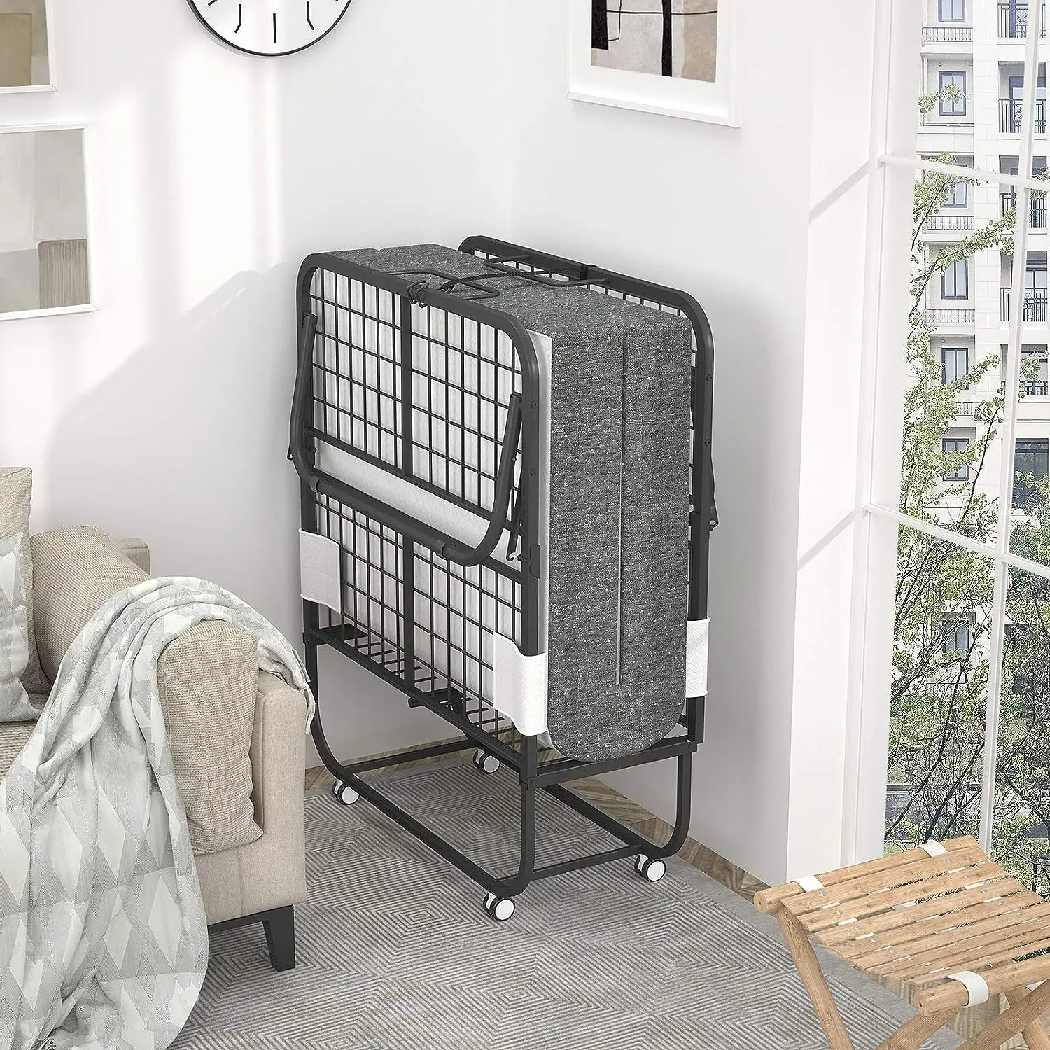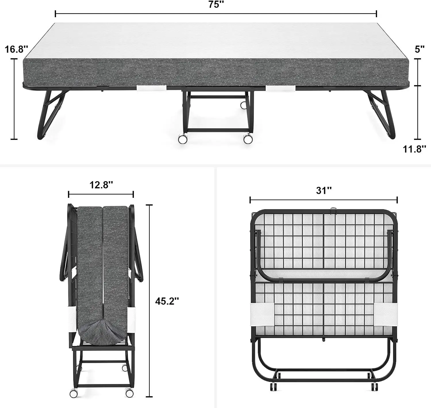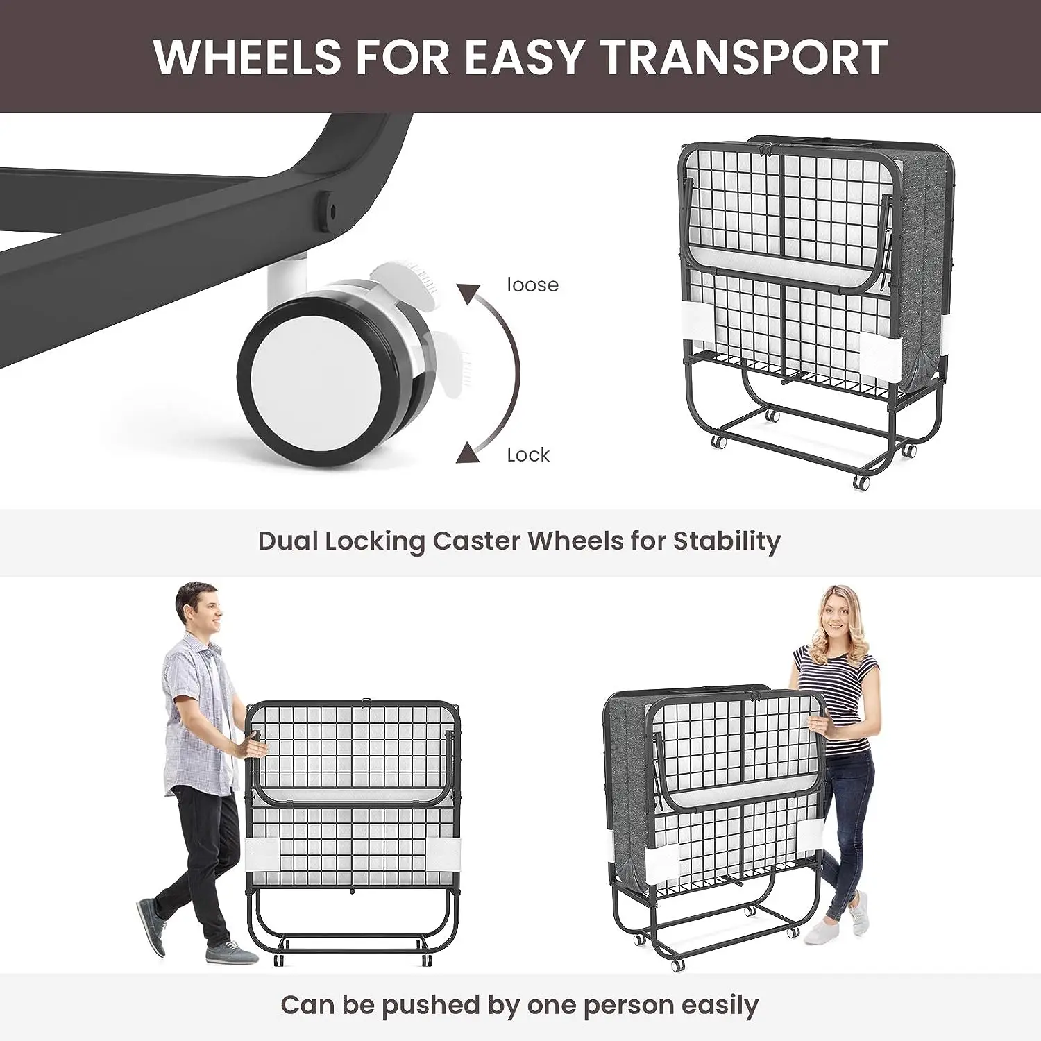 Cama Karcog Rollway, Cama plegable con colchón para adultos, Storage Cover Included, Cot Size Extra Guest Bed, Foldable Bed with Memory Foam Mattress and Sturdy Metal Frame on Wheels – 75” x31″