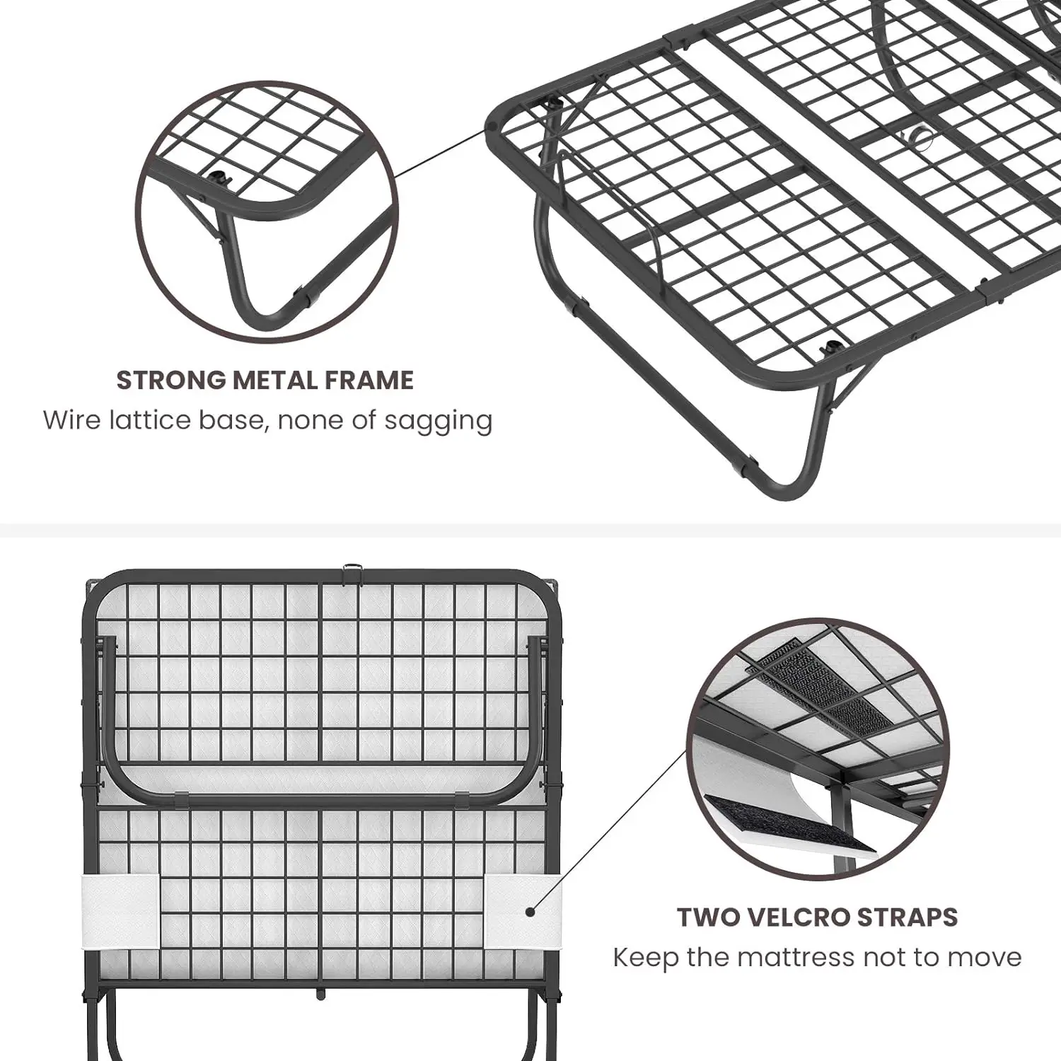 - Sturdy Bed Frame: Made of the sturdy premium steel frame, this folding bed with a reinforced structure is durable enough for long-term use, offering you ample stability and support. *BONUS: It comes with a FOLDABLE BED COVER that can protect your bed from dust when you need to fold up bed for storage.