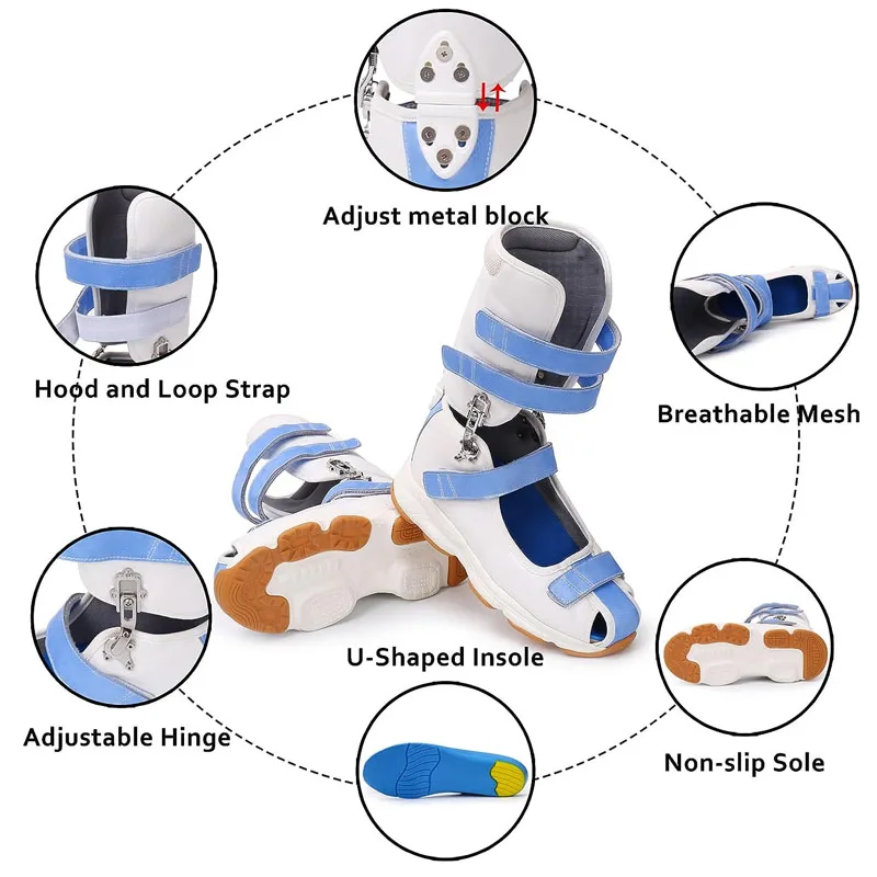 【Hood and Loop Strap】The hood and loop strap and hinge design allow the shoes to adapt to different foot widths and also adjust and fix according to different injury angles, enhancing stability and maintaining correct posture.