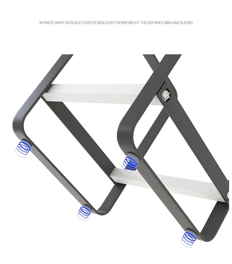 2. El organizador de platos viene con protectores de goma duraderos en la parte inferior de la rejilla., que protege efectivamente los platos del deslizamiento, Permitir las placas se puede almacenar y mostrar en modo vertical o colocarse en posición vertical sin deslizarse.