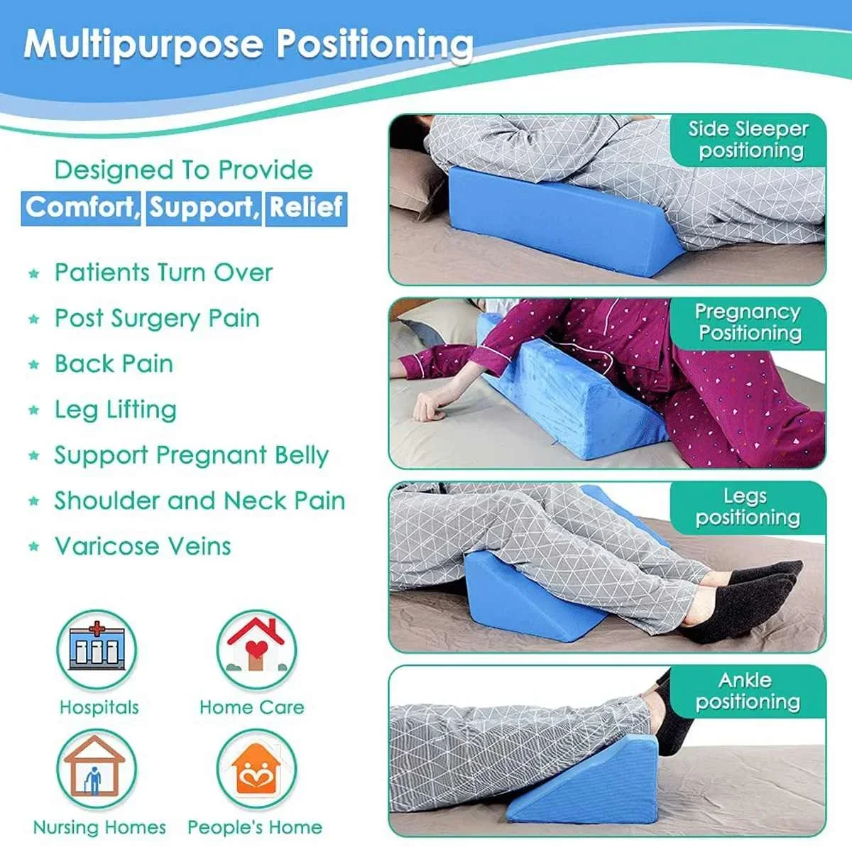 – This wedge bed pillow is designed with the R shape suitable for our human being’s somatotype theory. Cómodo, gradual slope provides BACK and LEG support to help improve blood circulation to the heart, respiratory problems, reducing pressure on the spinal cord, and back pain.