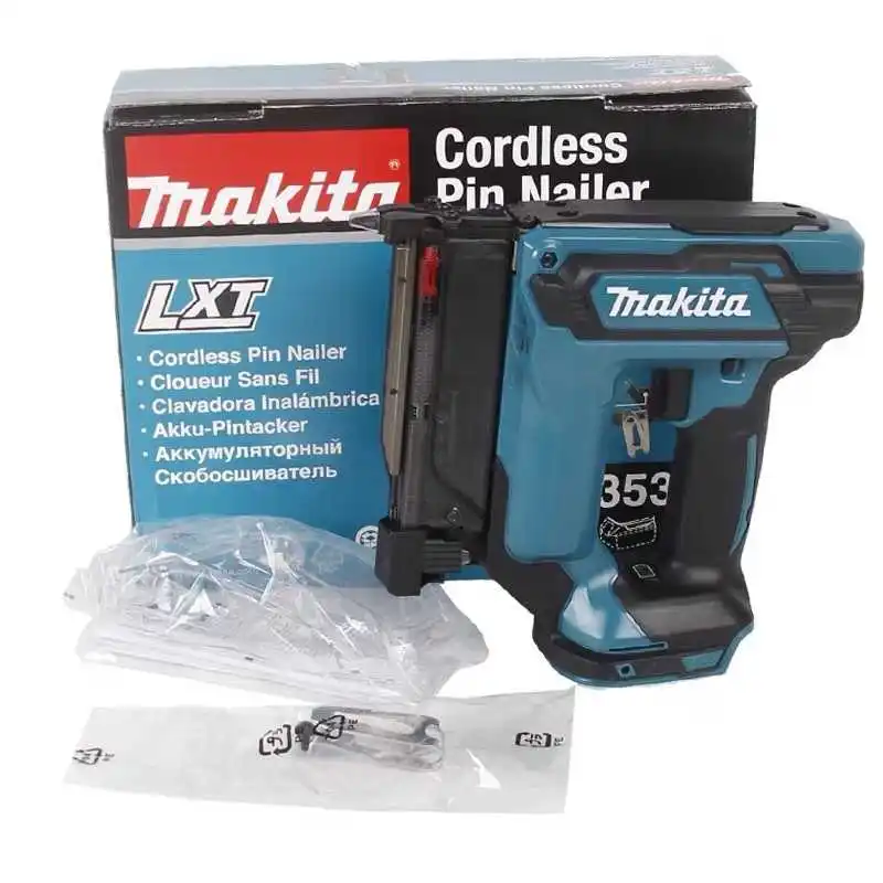 The Makita DPT353Z 18V LXT Cordless Pin Nailer is a powerful tool designed for woodworking projects. It features a 23-gauge nail size and operates on a lithium-ion battery. This electric nail gun is a convenient and efficient choice for fastening wood without the need for a compressor or hose. Please note that this product does not come with a battery or charger. It is a versatile and portable tool that makes it easy to tackle various woodworking tasks with ease.