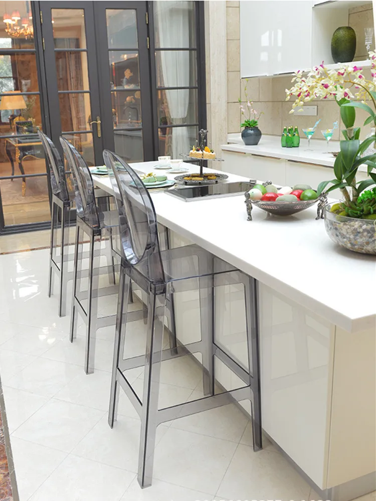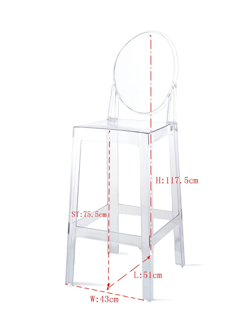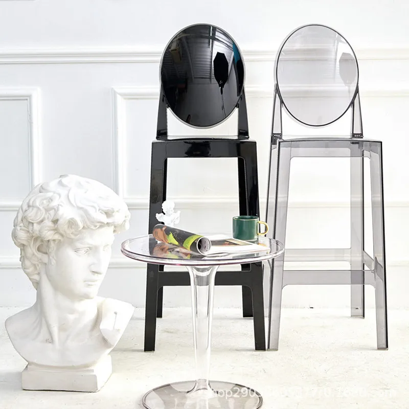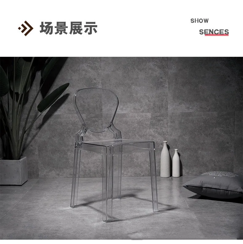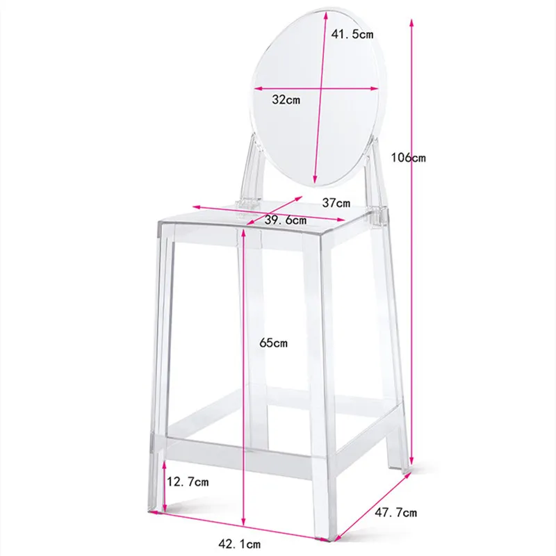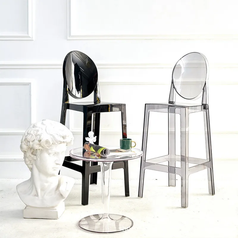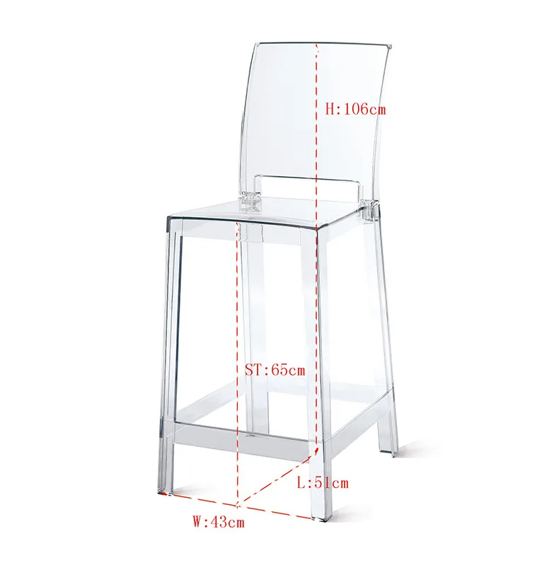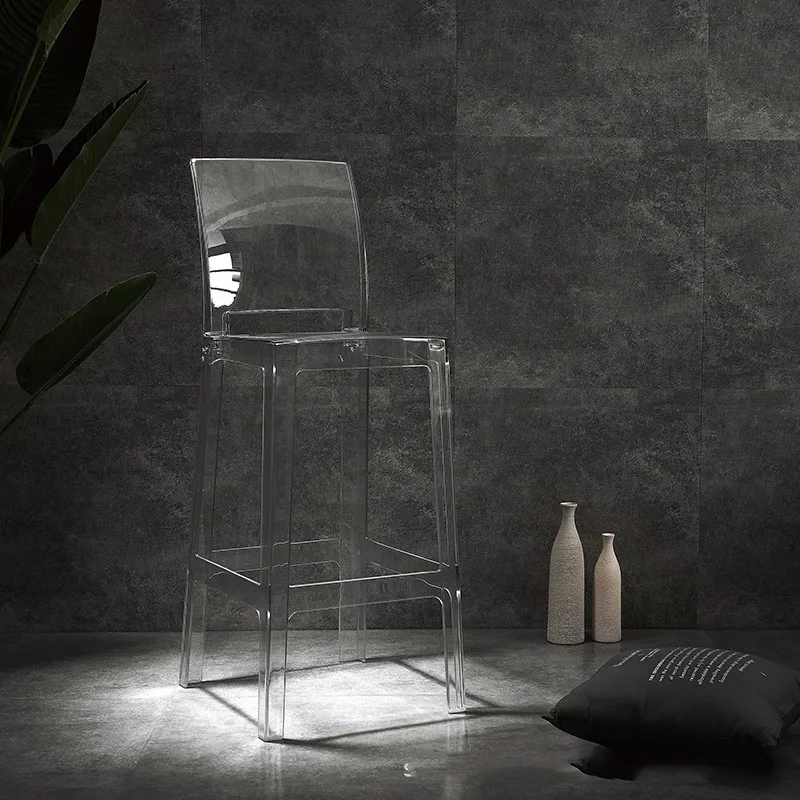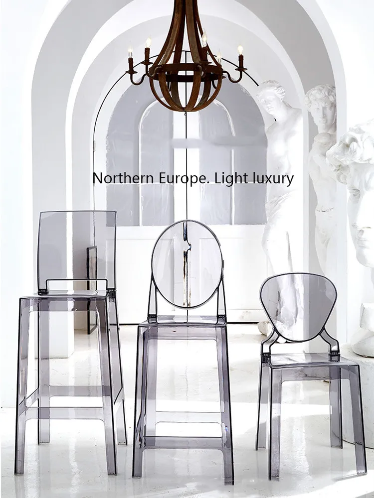 La silla de bar de plástico acrílico nórdico es una silla de brazo transparente que agrega un toque moderno a cualquier comedor. Hecho de plástico acrílico duradero, es elegante y fácil de limpiar. El diseño de la silla fantasma le da un aspecto único y elegante., convirtiéndolo en una opción popular para la decoración del hogar contemporánea. Este taburete de cristal es liviano pero resistente, convirtiéndolo en una opción de asiento versátil para bares o comedores. El diseño transparente le permite mezclarse sin problemas con cualquier estilo de decoración, Mientras que la silueta elegante agrega un toque de sofisticación a cualquier espacio.