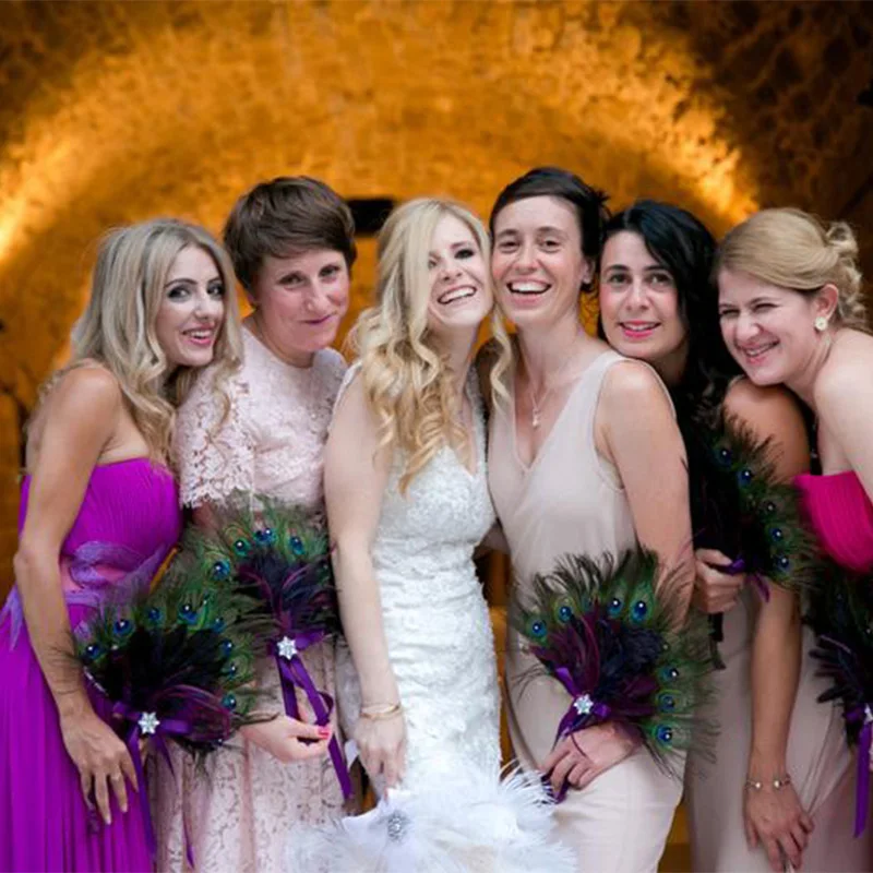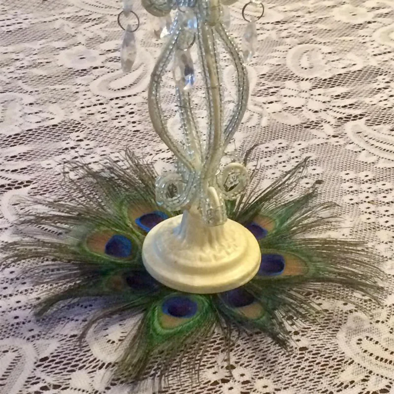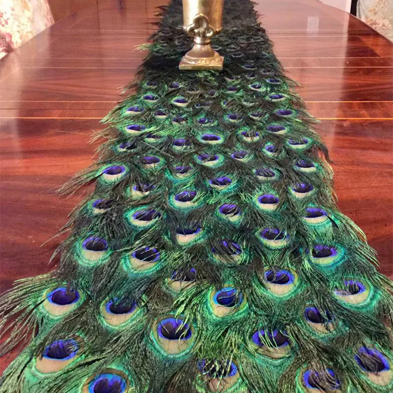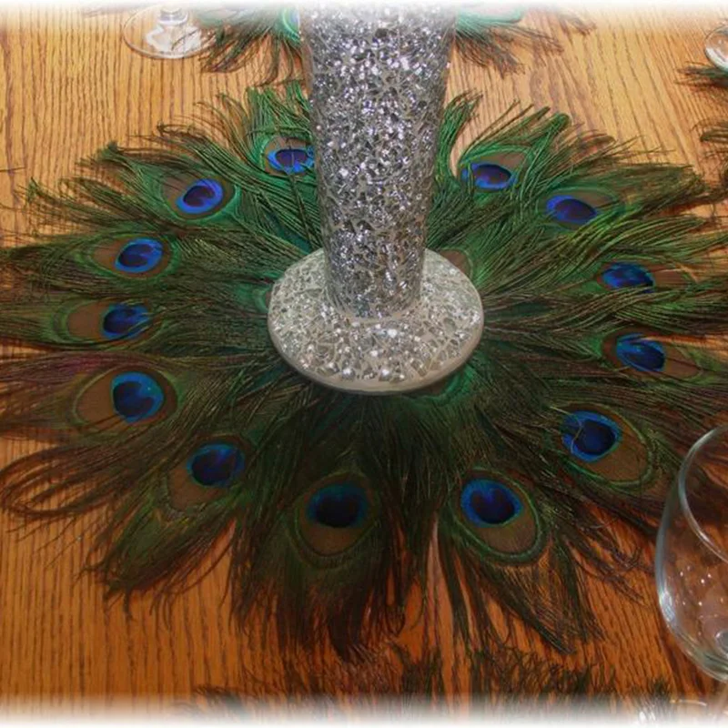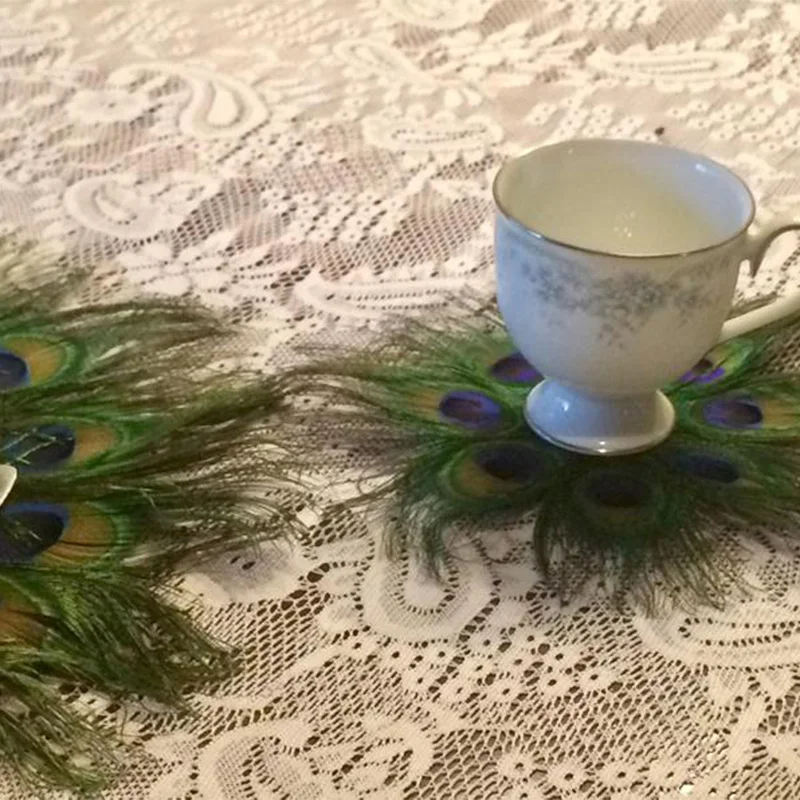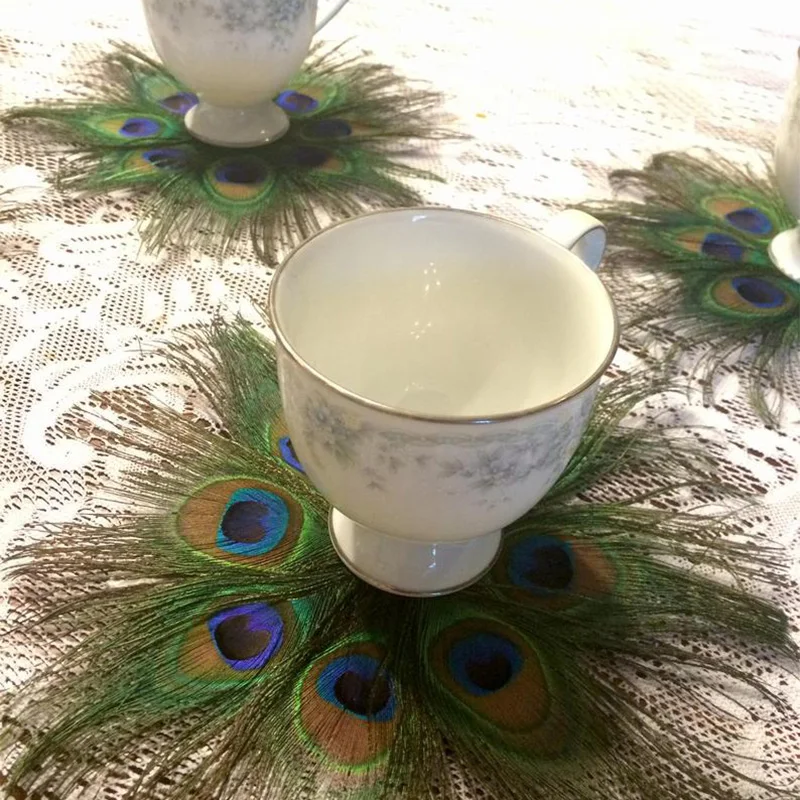Camino de mesa artesanal con plumas de pavo real, posavasos, abanico, baby shower nupcial…